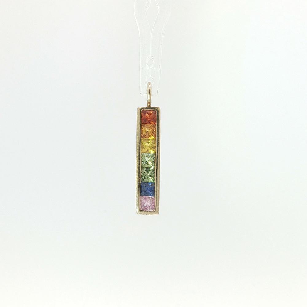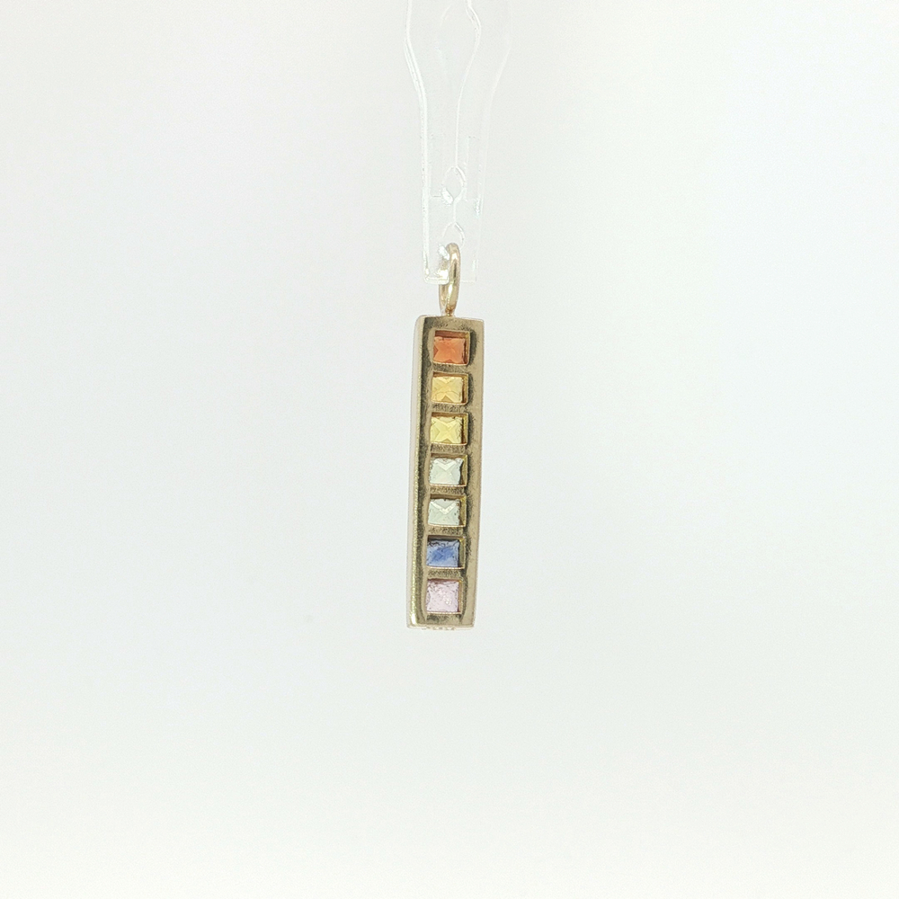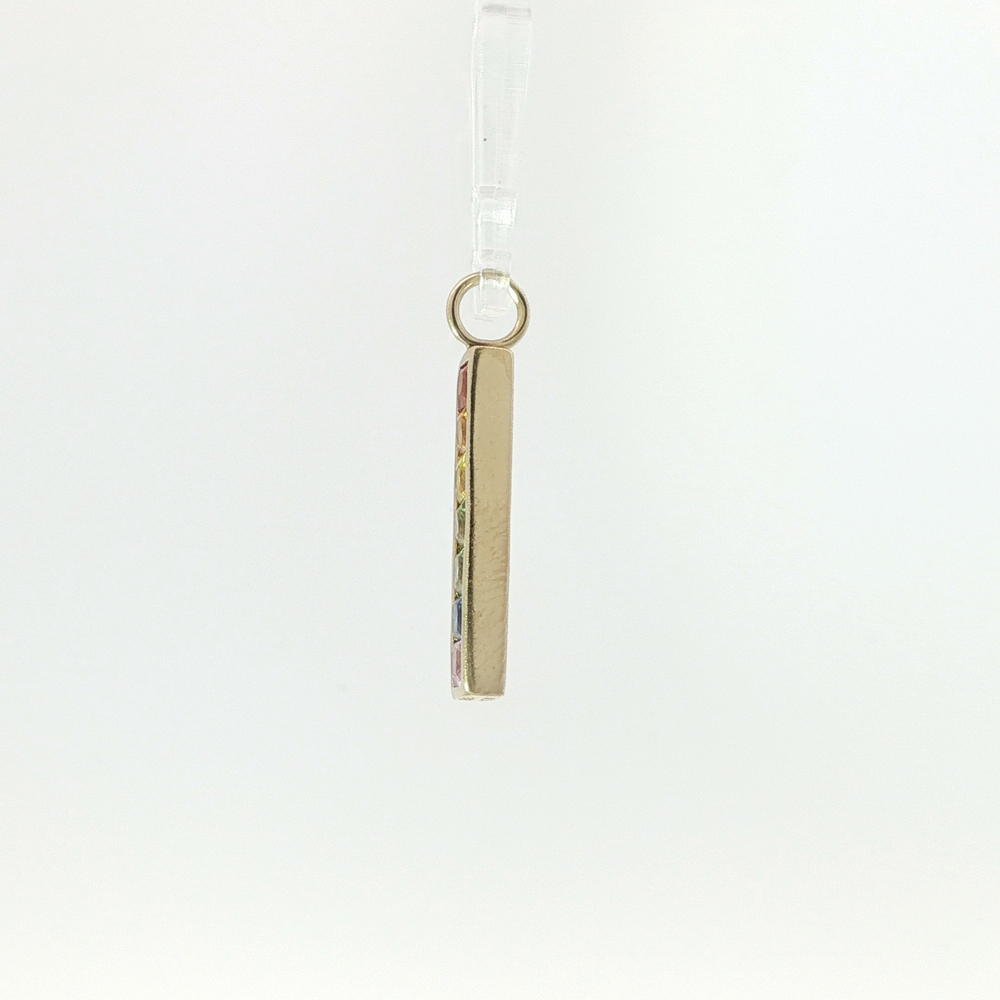 Ladies 10k Yellow Gold Multi Colored Stone Bar Pendant