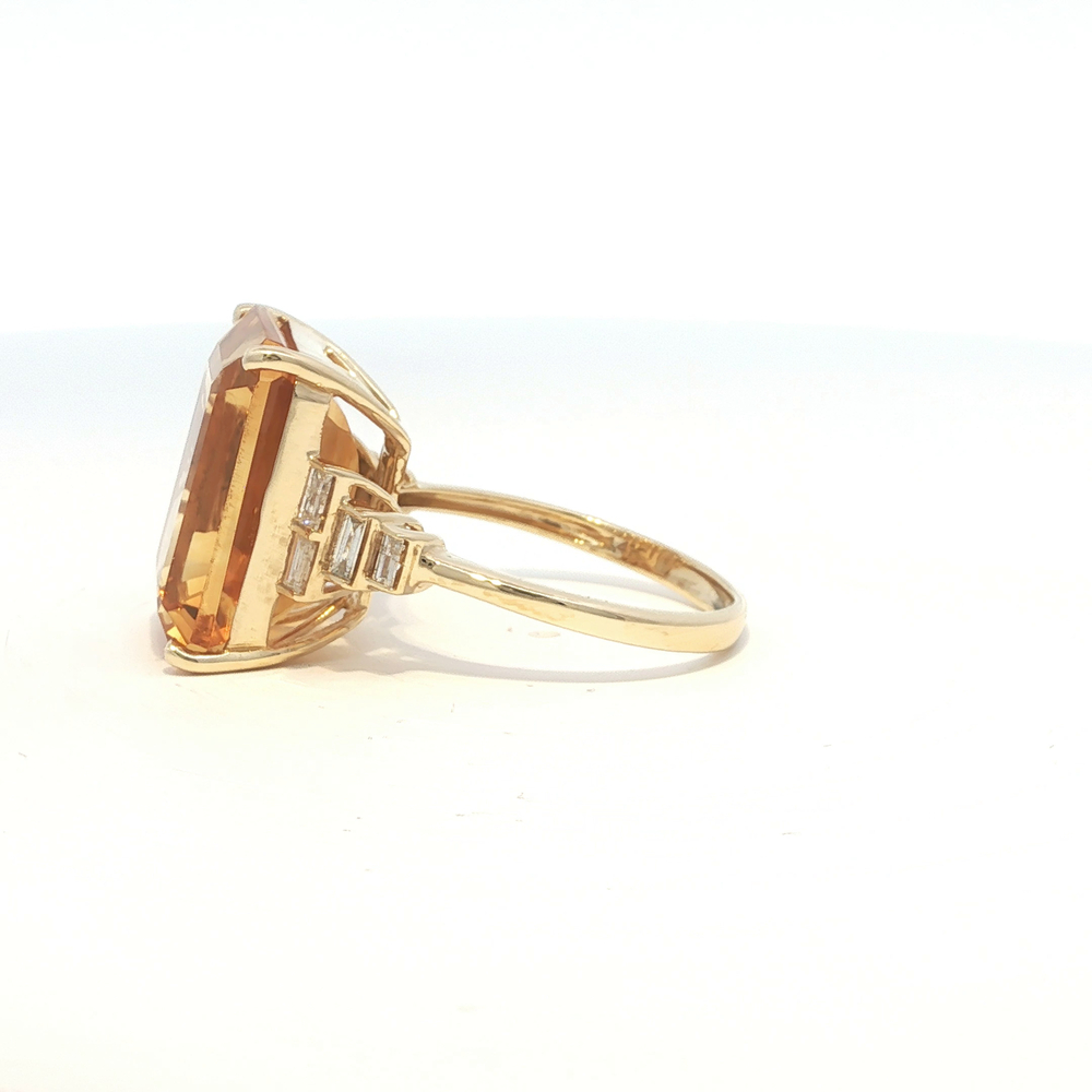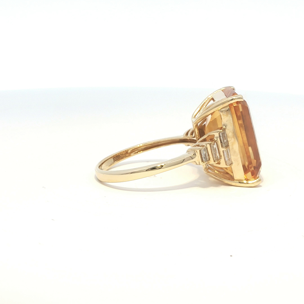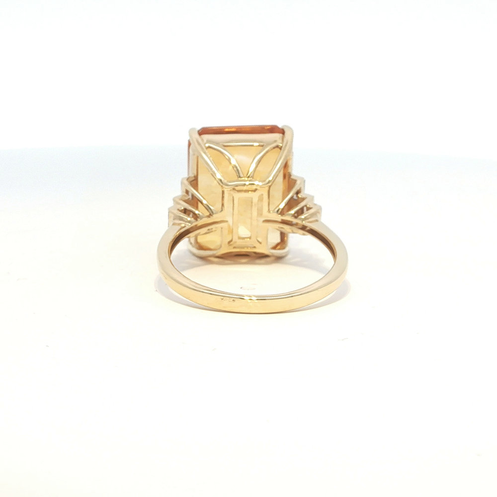 This stunning ladies size 7 ring, intricately crafted from 14k yellow gold, features a radiant citrine birthstone complemented by sparkling diamonds. Luxurious yet contemporary, this ring adds an elegant touch to any look, making it a perfect gift, especially for those with a November birthday.