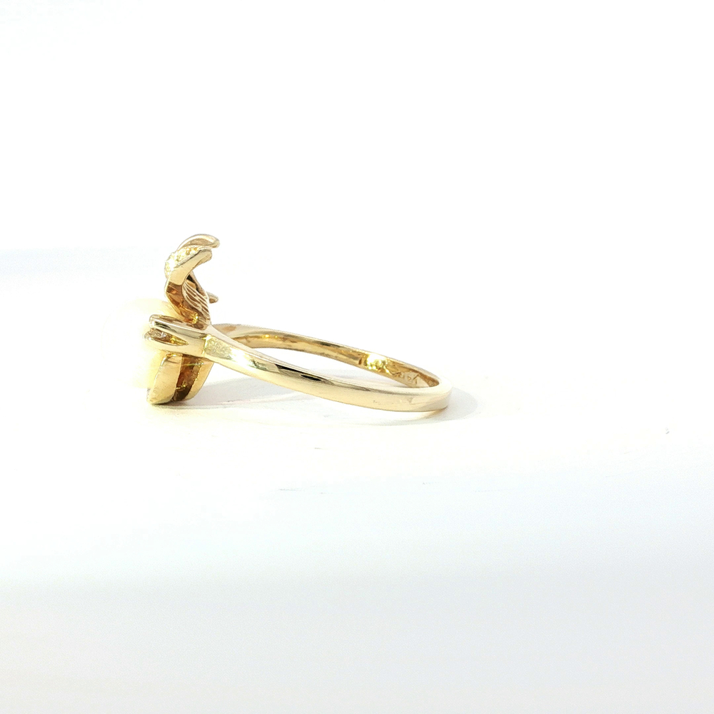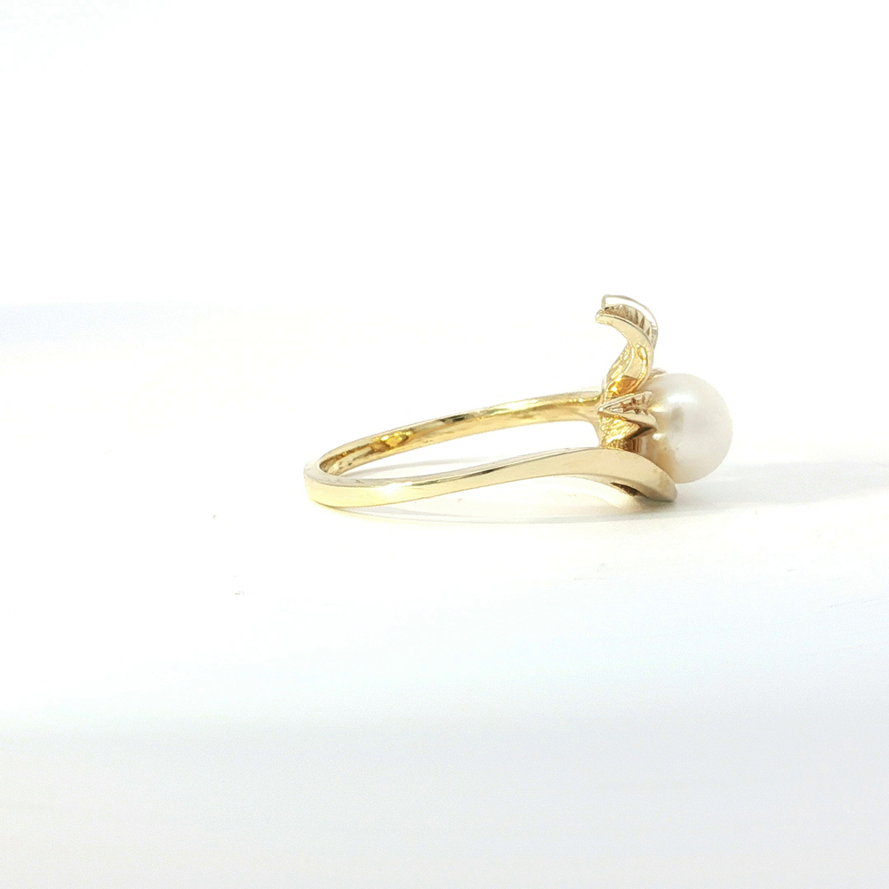 Ladies 14k Yellow Gold Pearl & Diamond Birthstone Ring Size 6
