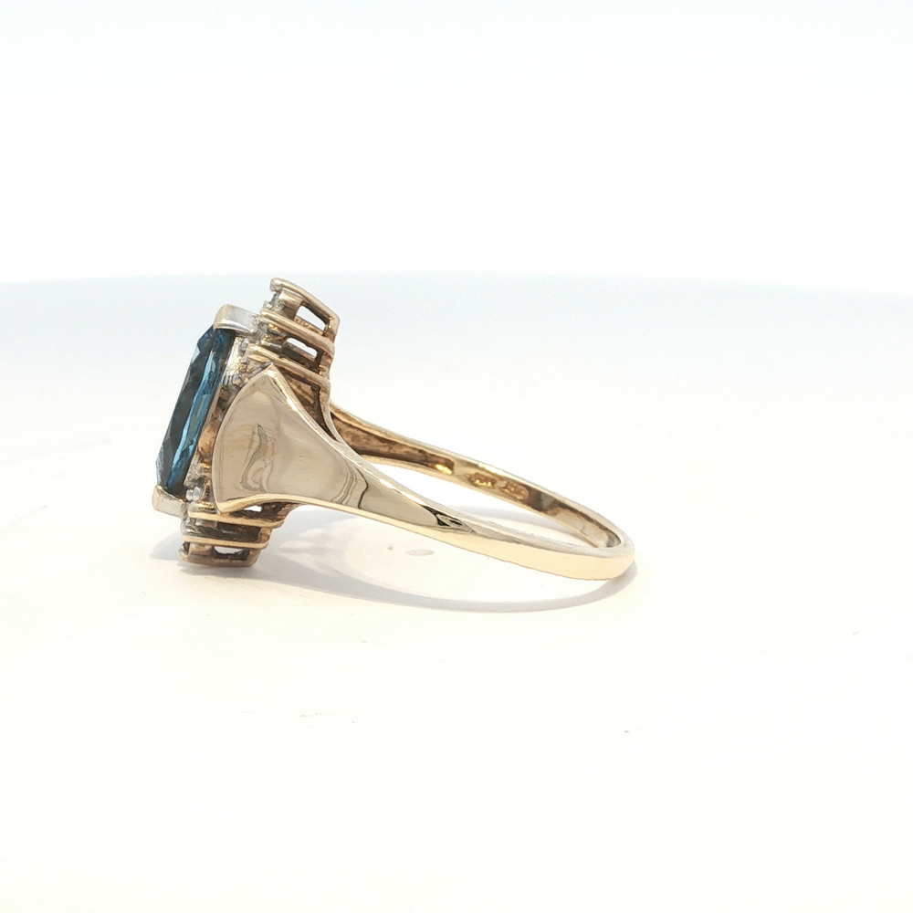 Ladies Blue Topaz & Diamond 10k Yellow Gold Birthstone Ring Size 7.75