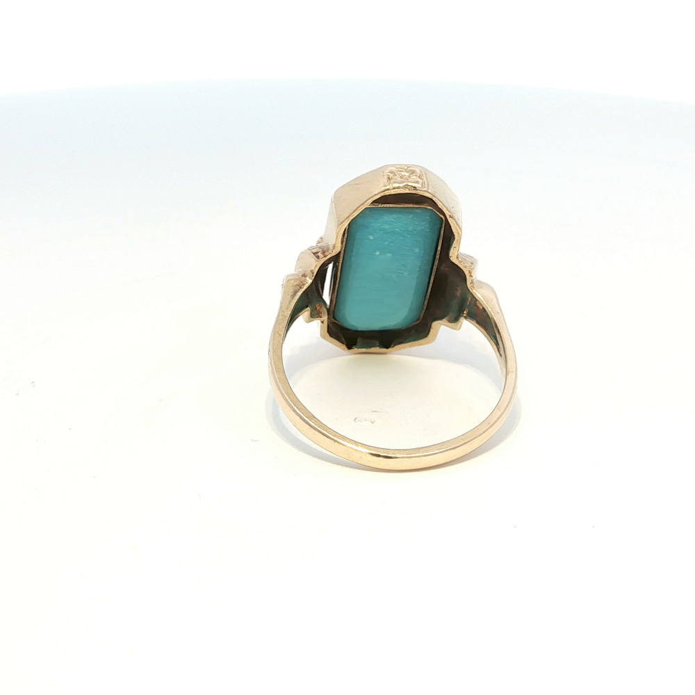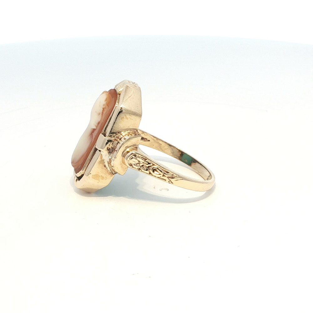 Ladies Cameo / Turquois Reversible 10k Yellow Gold Ring Size 6