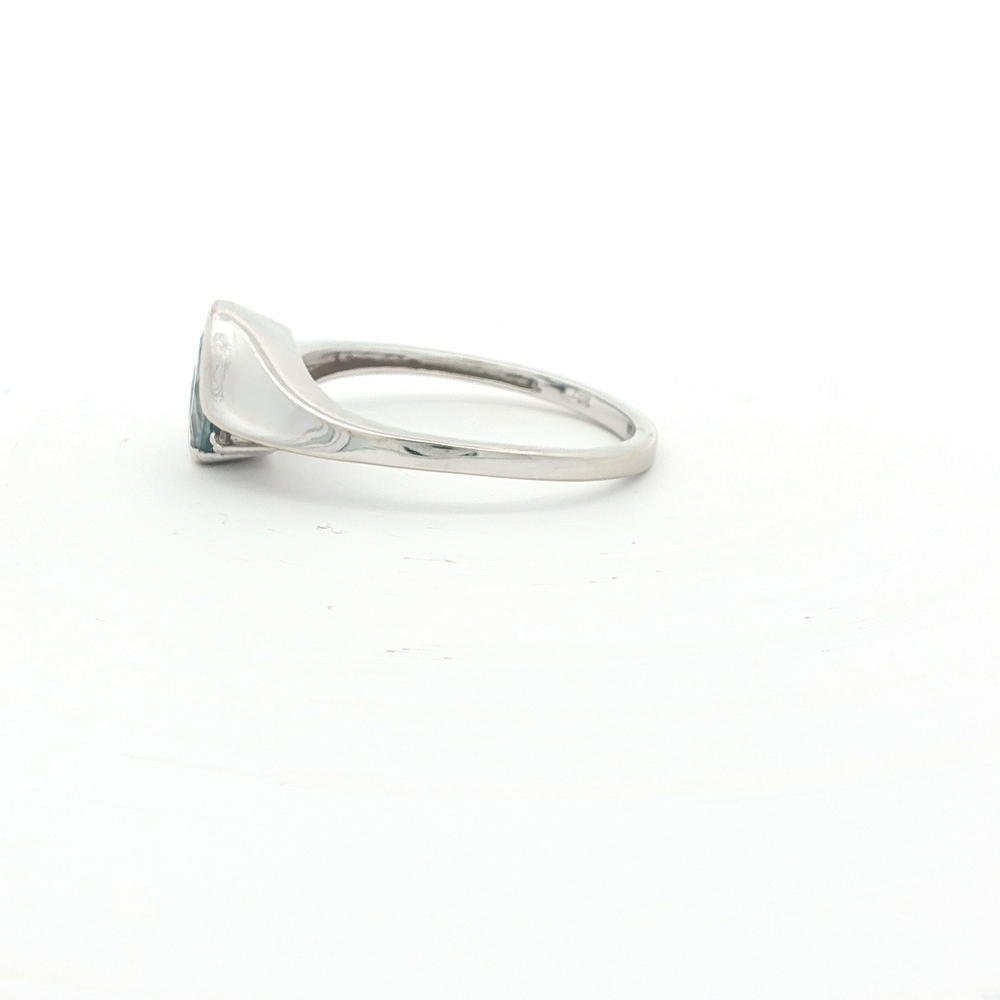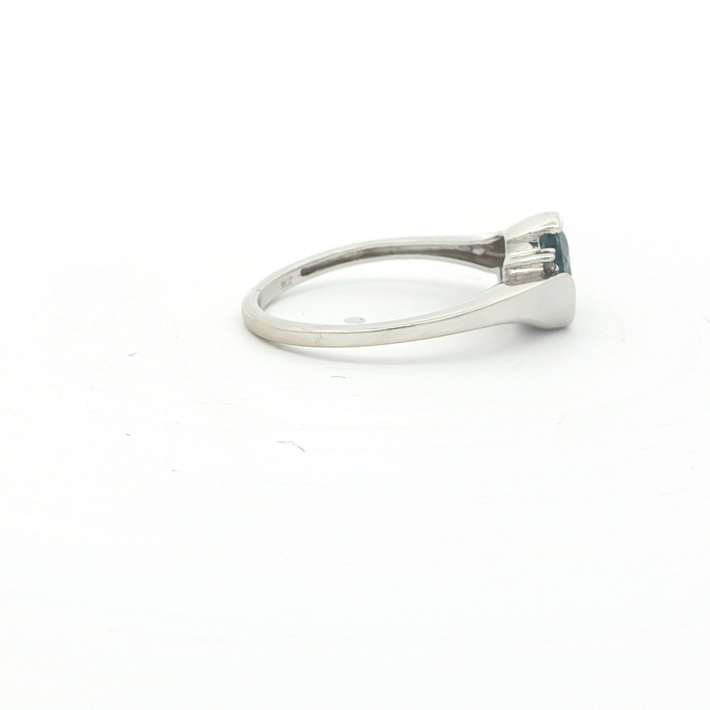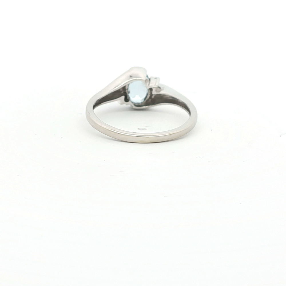 Elegantly crafted, this 14k white gold ring showcases a radiant oval blue topaz, gracefully highlighted by shimmering diamonds. This timeless piece, perfect for a stylish woman, features a size 6.75 band. Its sophisticated design makes it a versatile choice for everyday wear or special occasions. Add a touch of luxury to your collection with this exquisite gemstone ring.