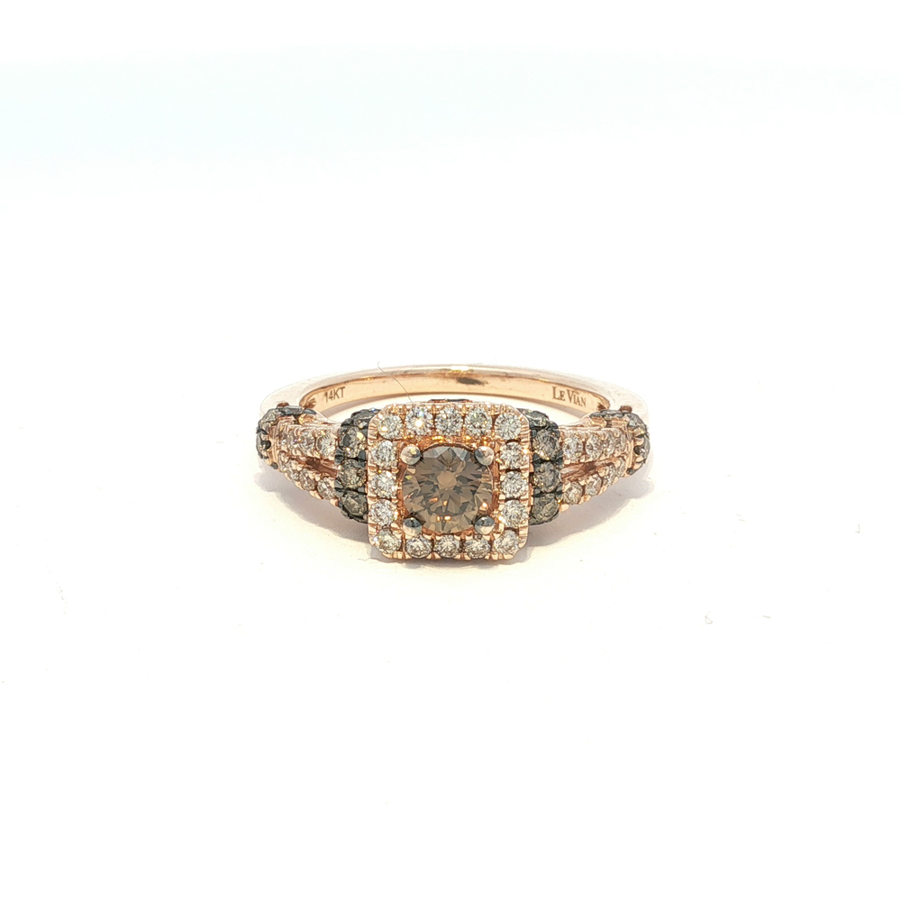 LeVian Ladies Chocolate / White Diamond 14k Rose Gold Ring Size 7