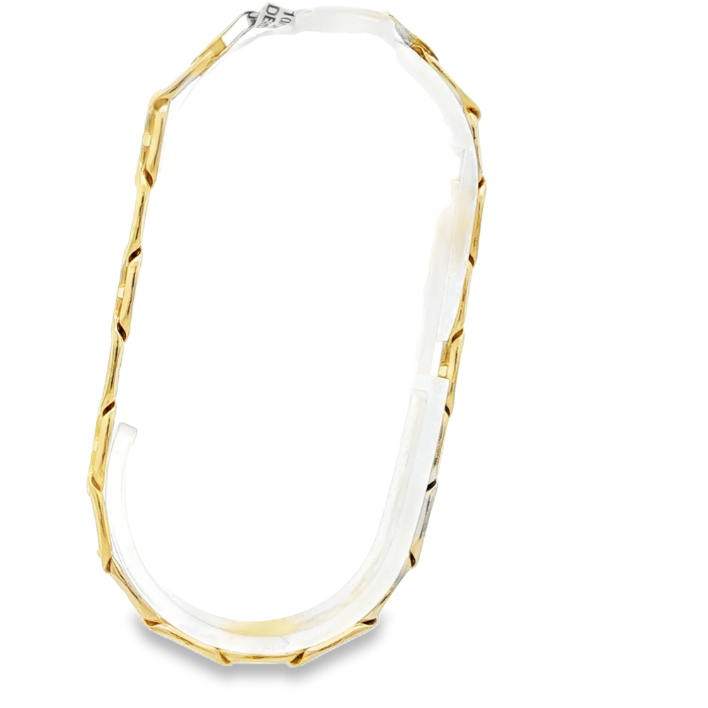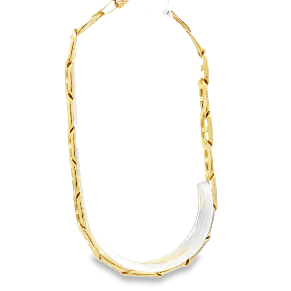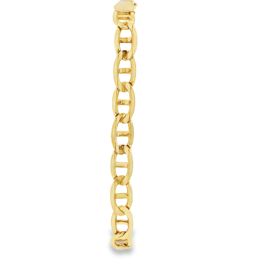 This men's bracelet is luxurious and robust, made of 14k yellow gold. It features a traditional 7mm Mariners link chain design, offering a blend of style and durability. Measuring 8 in length and weighing 15.0 grams, this bracelet is a unique, high-quality piece of jewelry.