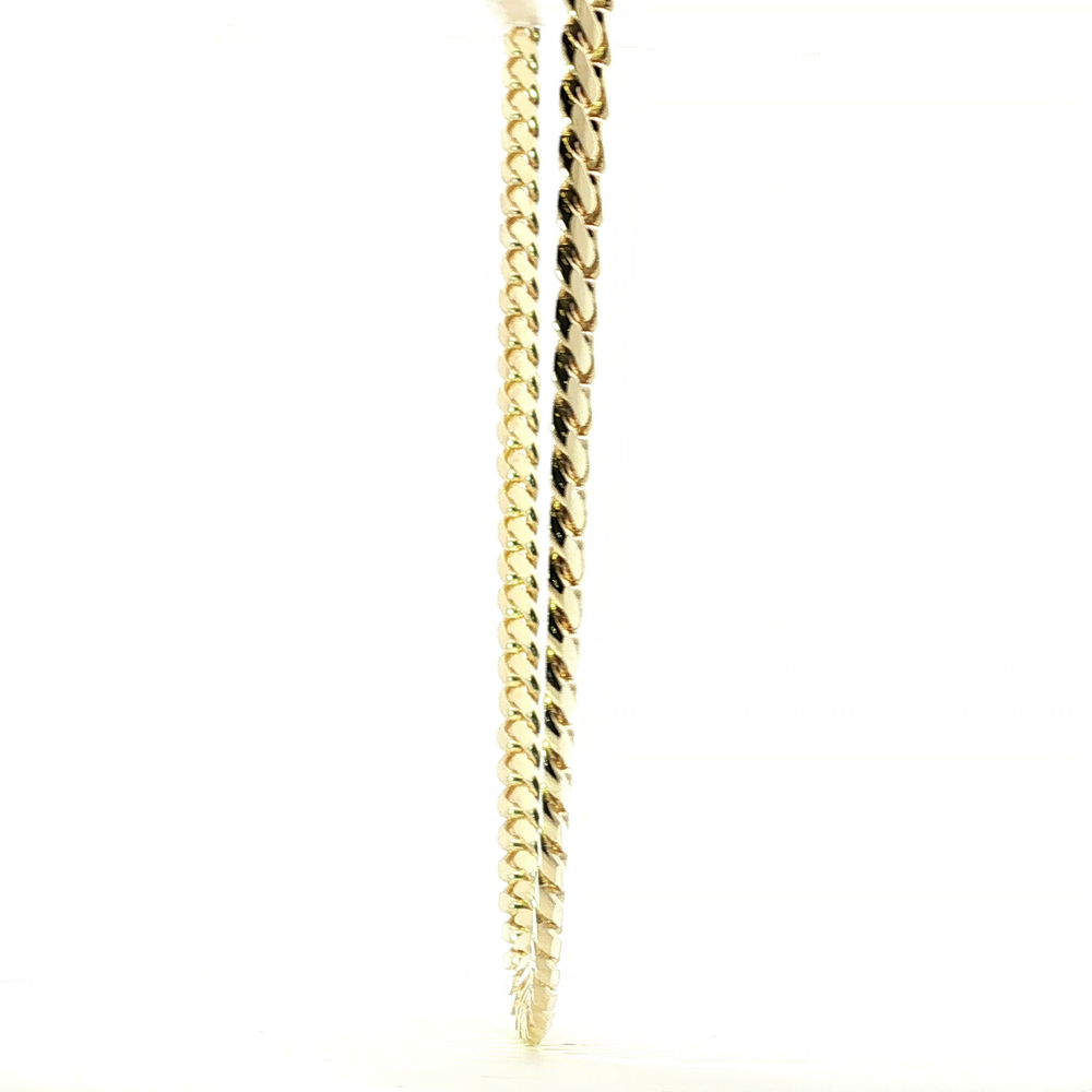 This Men's 7mm Necklace is meticulously crafted in Sterling Silver 925, and then lavishly plated with gold for added luxury. Its 20-inch Cuban-style design exudes masculinity and class. Weighing 55.2 grams, it provides a feel of solid quality. Perfect for accessorizing smart or casual outfits.