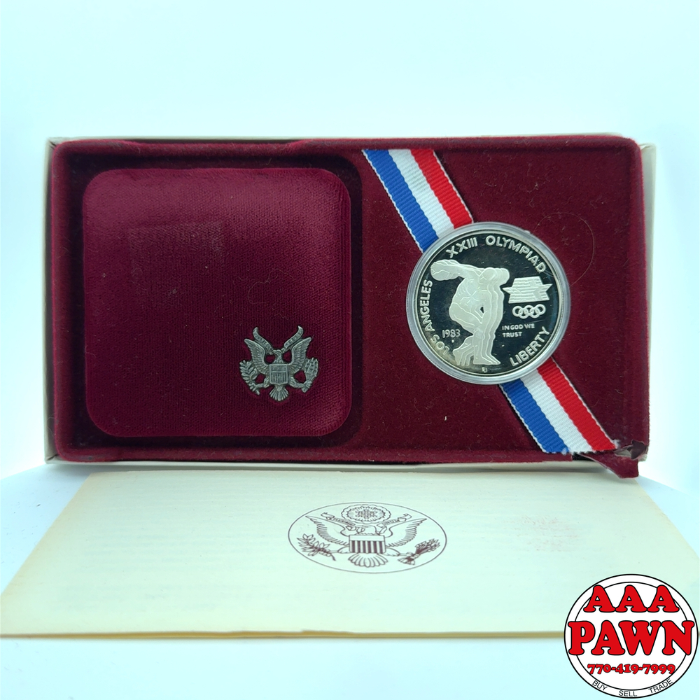 1983-S Proof Olympic Discus Commemorative Silver Dollar