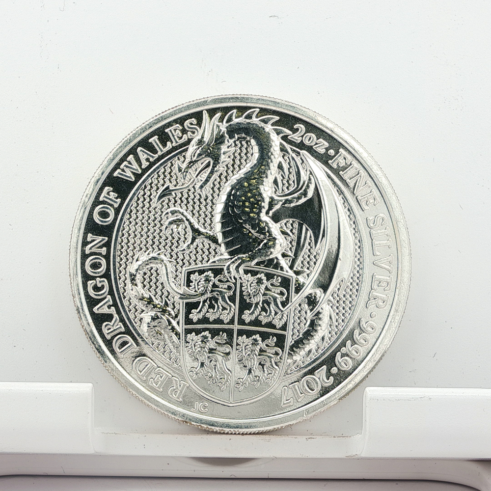 2017 Red Dragon of Wales 9999 Fine 2 Troy Oz Silver Coin