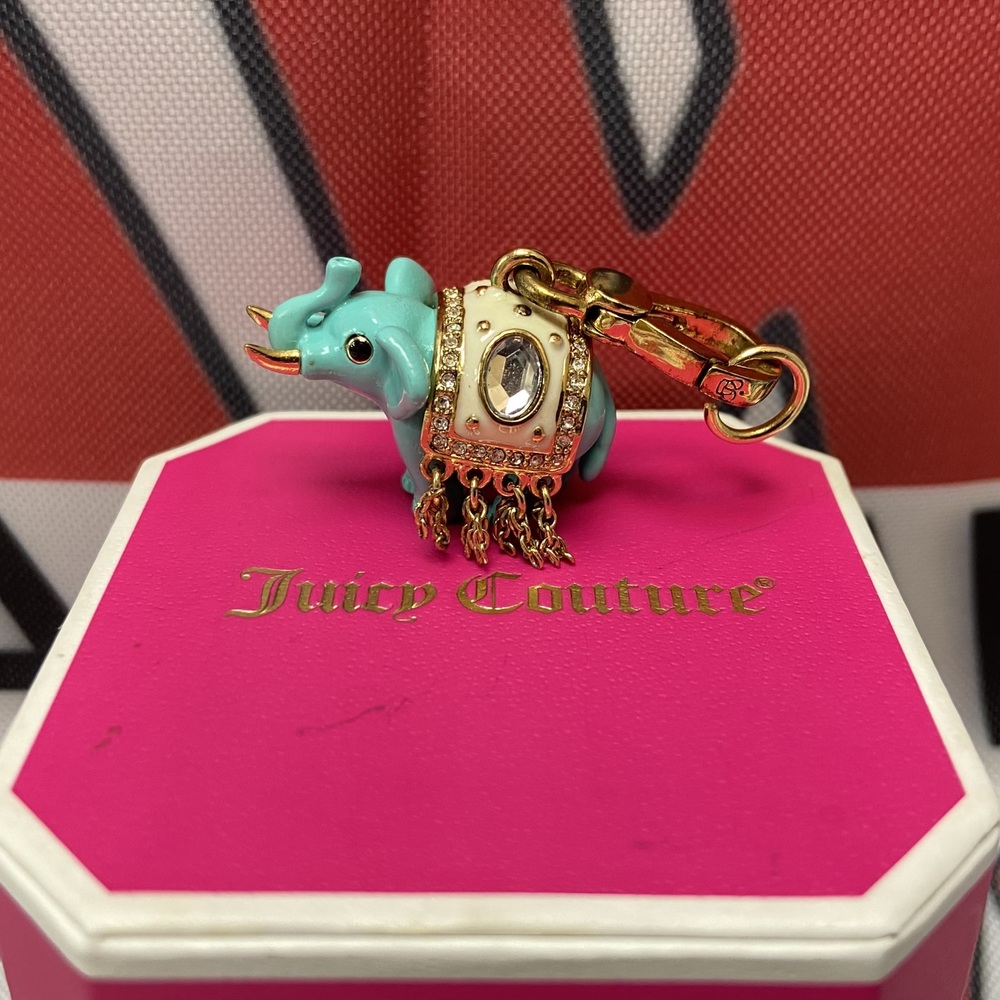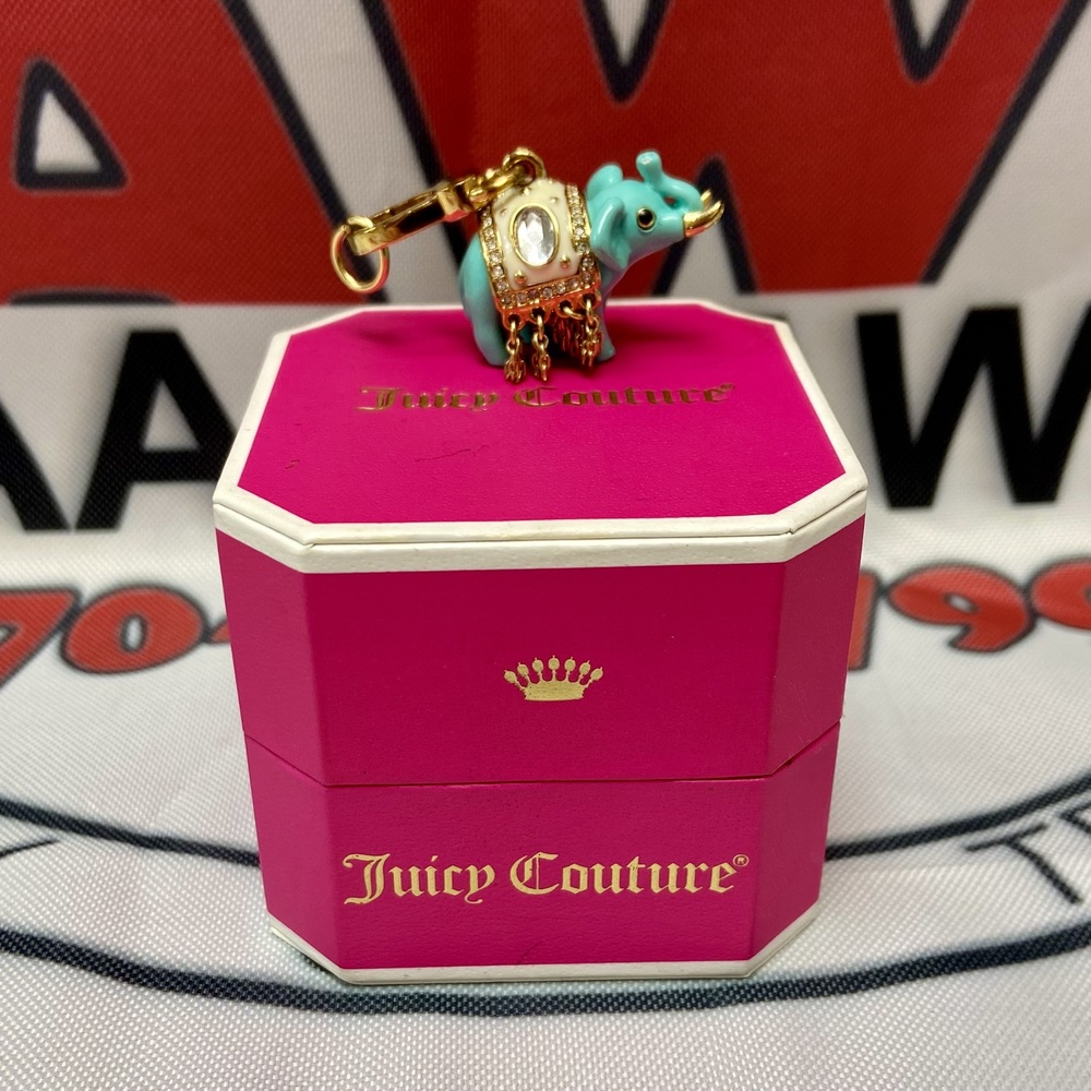 Authentic Juicy Couture Lucky Royal Elephant Blue Gold-Tone Charm YJRU5874