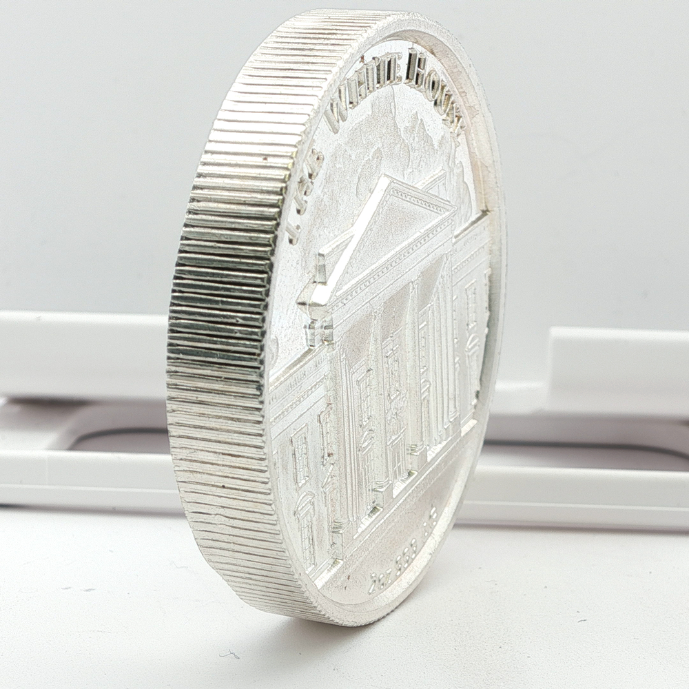 This .999 fine silver coin, weighing 2 Troy oz, intricately commemorates Donald J. Trump as the 45th President. Accompanied by a limited mintage, it exudes exclusivity, superior quality, and expert craftsmanship, making it a coveted collector's asset.