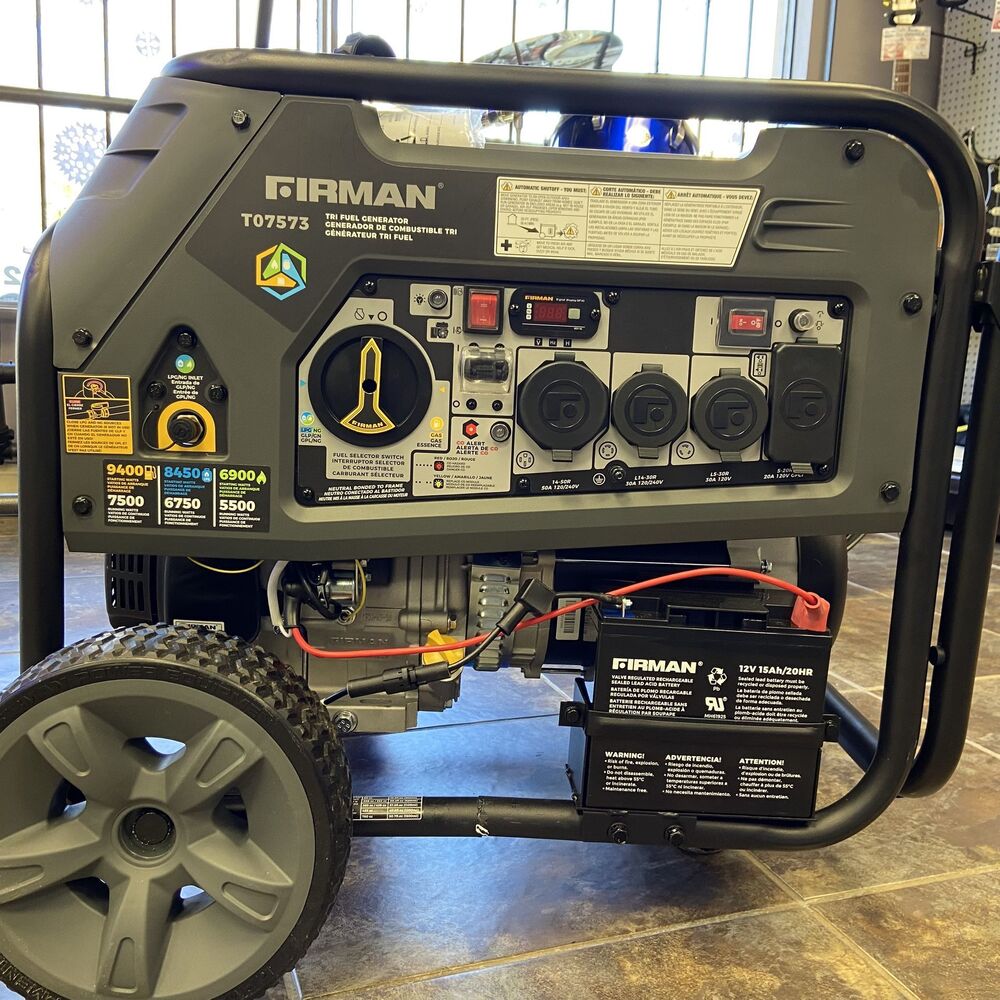 The Firman T07573 is a tri-fuel, 9400W portable generator, with electric start and 120/240V output. Equipped with a CO Alert safety feature, it offers versatile power solutions for various applications.