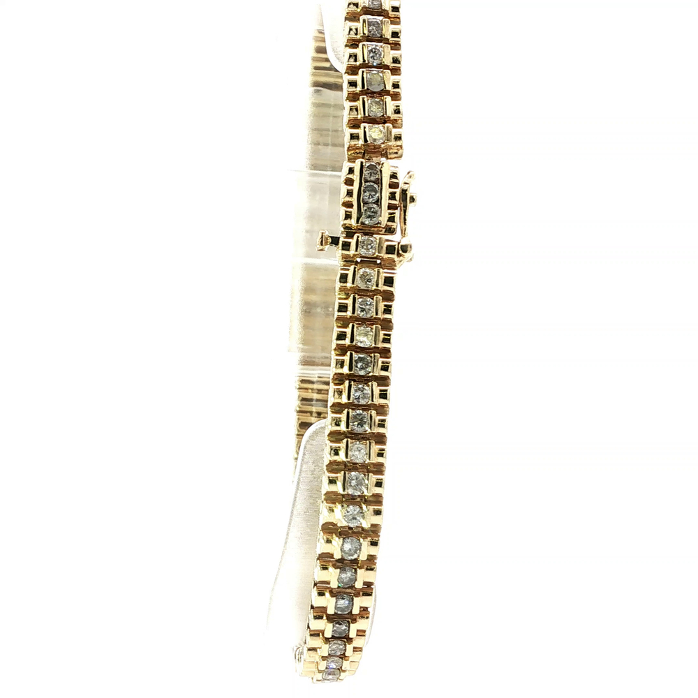 Experience luxury with this elegant ladies tennis bracelet. It features a dazzling 4.25ctw diamond set in solid 14k yellow gold. Its length extends up to 8.5-inch and it boasts a substantial weight of 33.5 grams. This timeless, limited edition piece adds polish to any outfit.