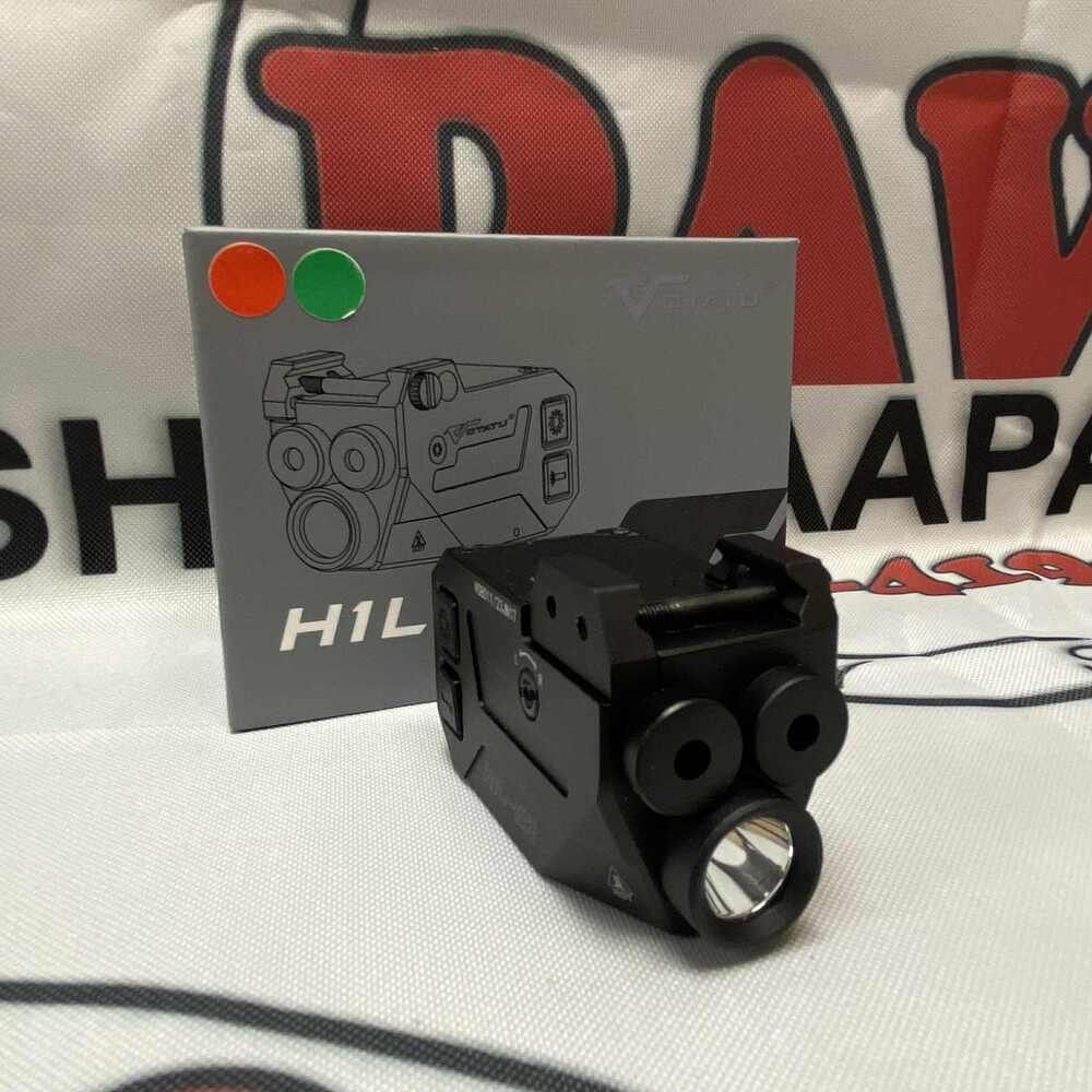 The Votatu H1L Green/Blue Shockproof Pistol Laser/Light Combo is a rechargeable, robust accessory for pistols, ideal for improving shooting accuracy. Features include shockproof technology, dual-color lasers for visual clarity, and a built-in flashlight. Designed for durability and convenience during night-time use.