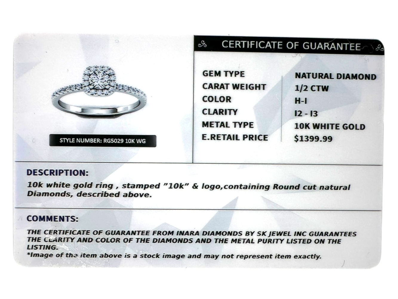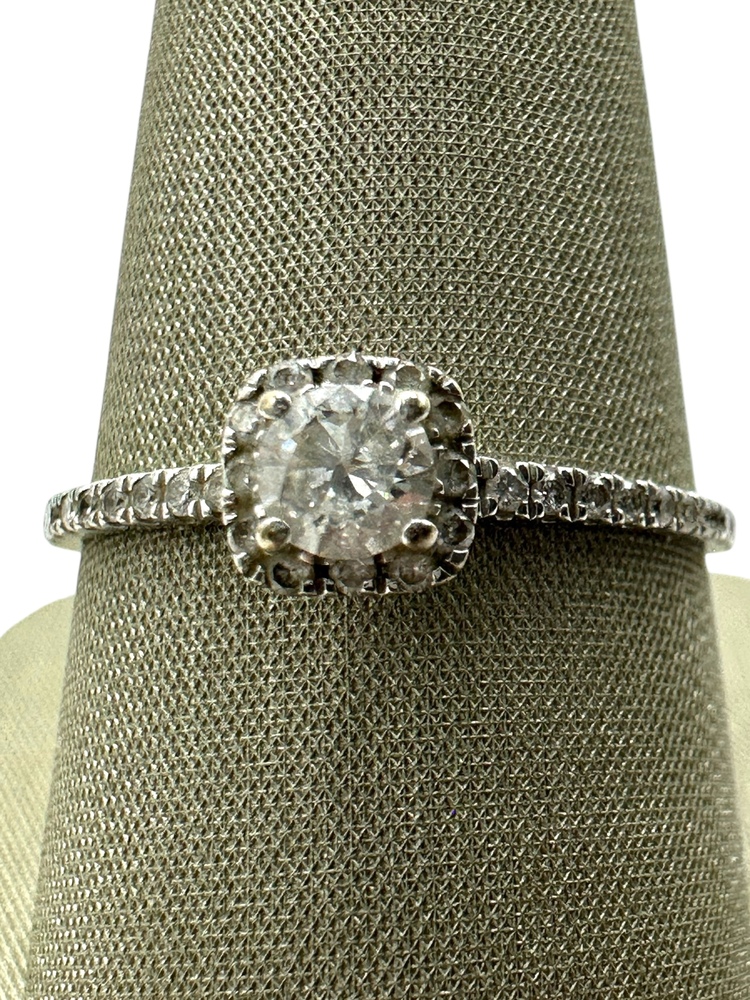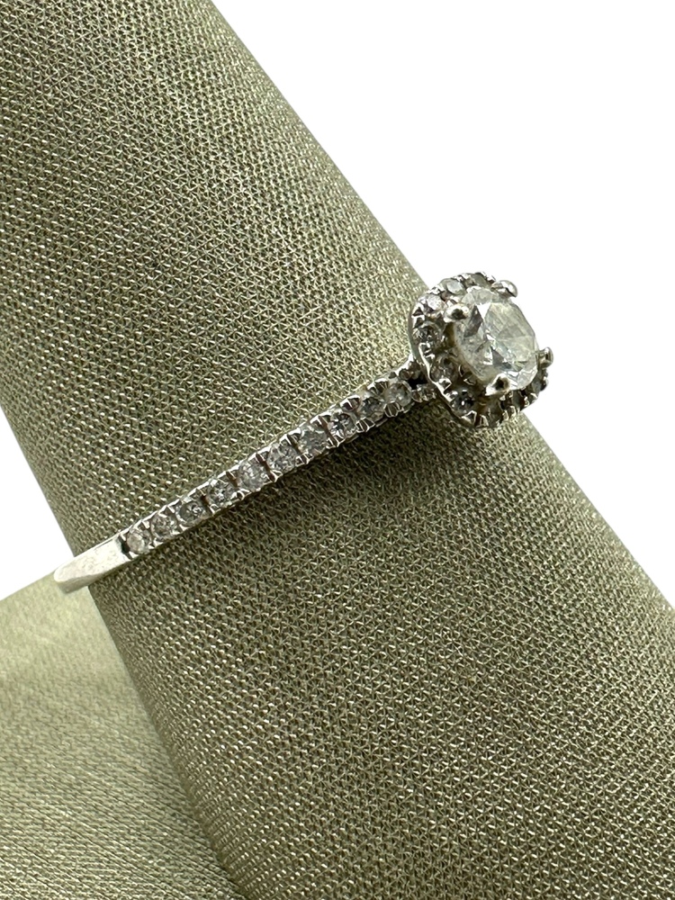 10K White Gold .50cttw Diamond Halo Ring with Certificate