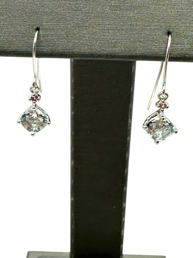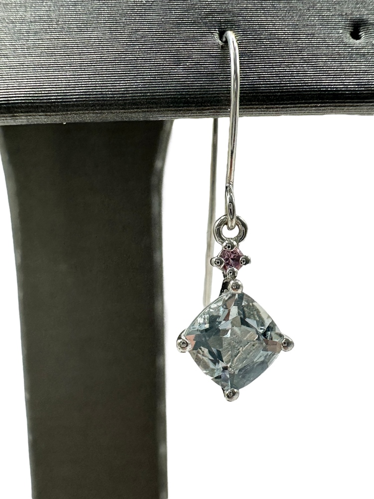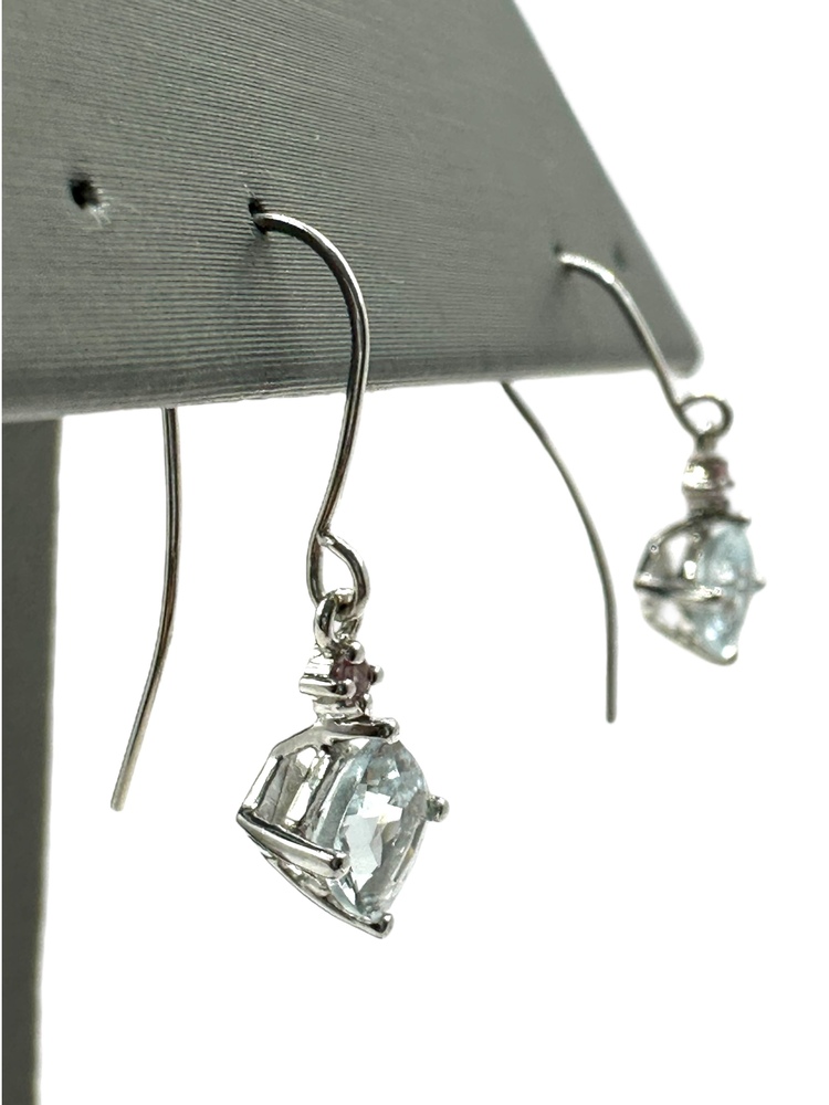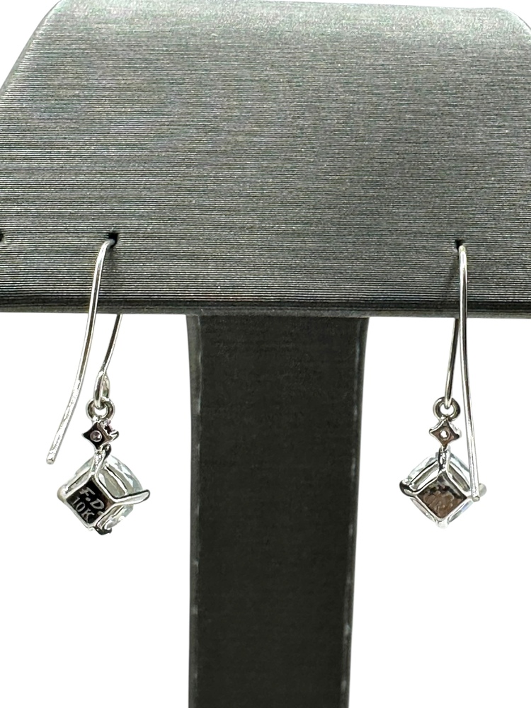 10K White Gold Blue Stone & Diamond Dangle Earrings 1 grams