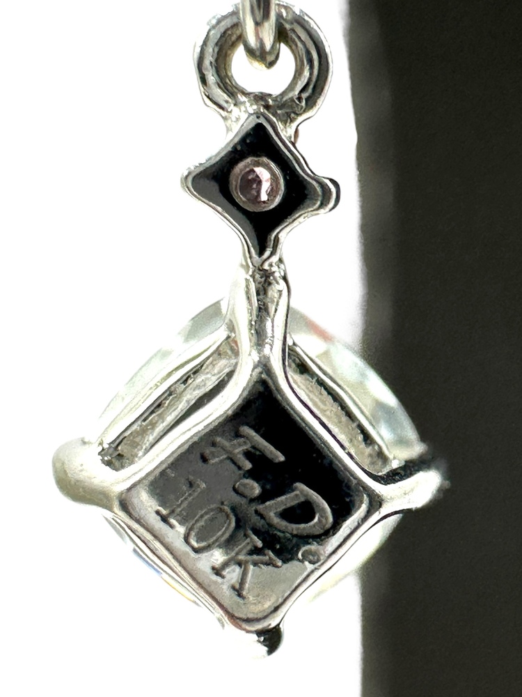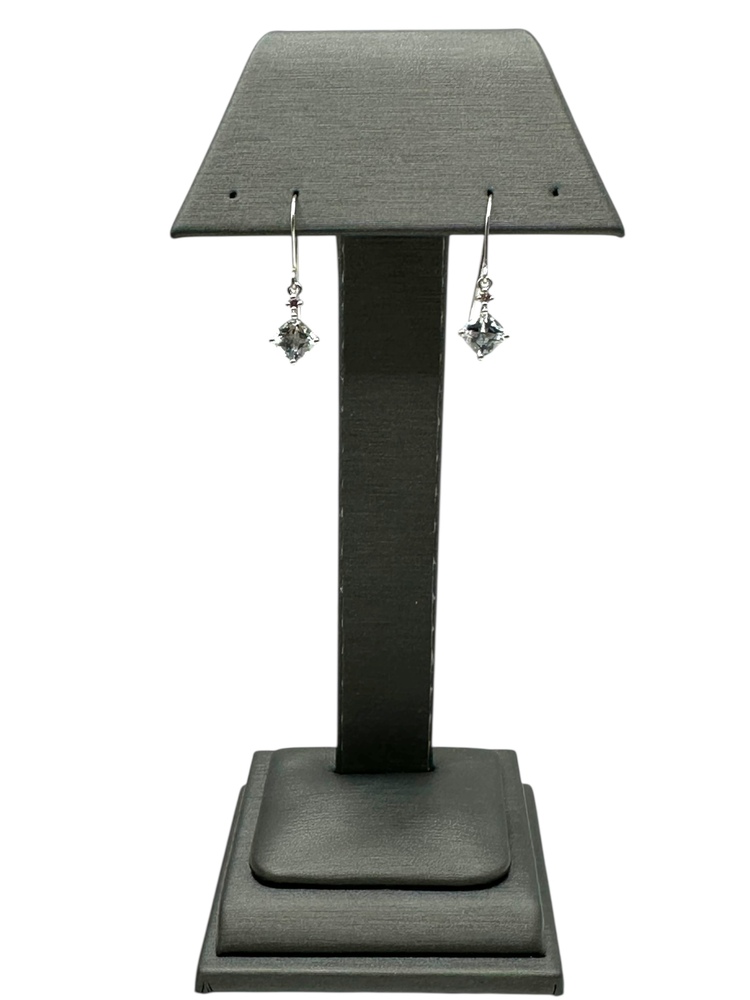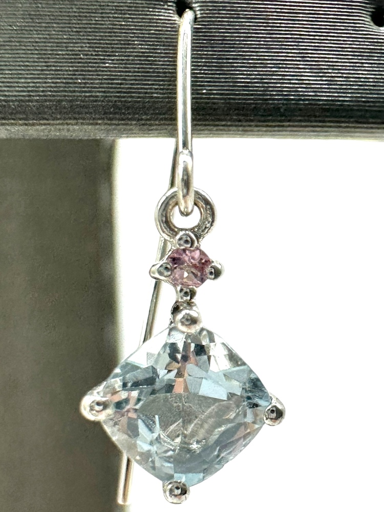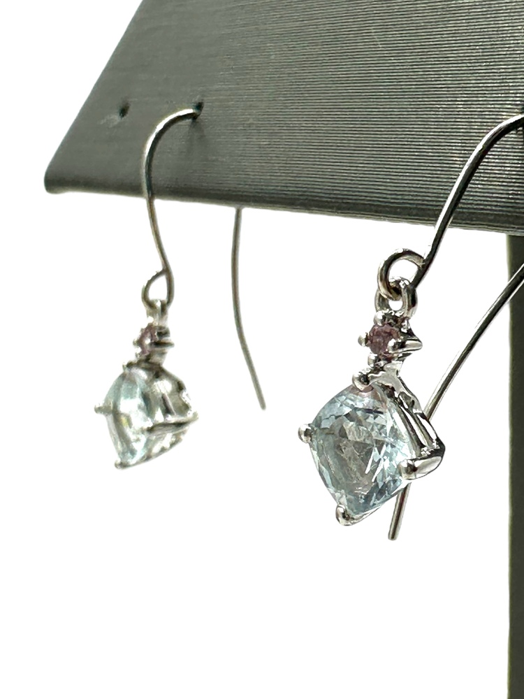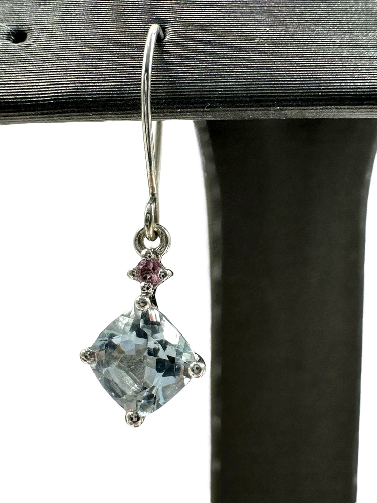 10K White Gold Blue Stone & Diamond Dangle Earrings 1 grams