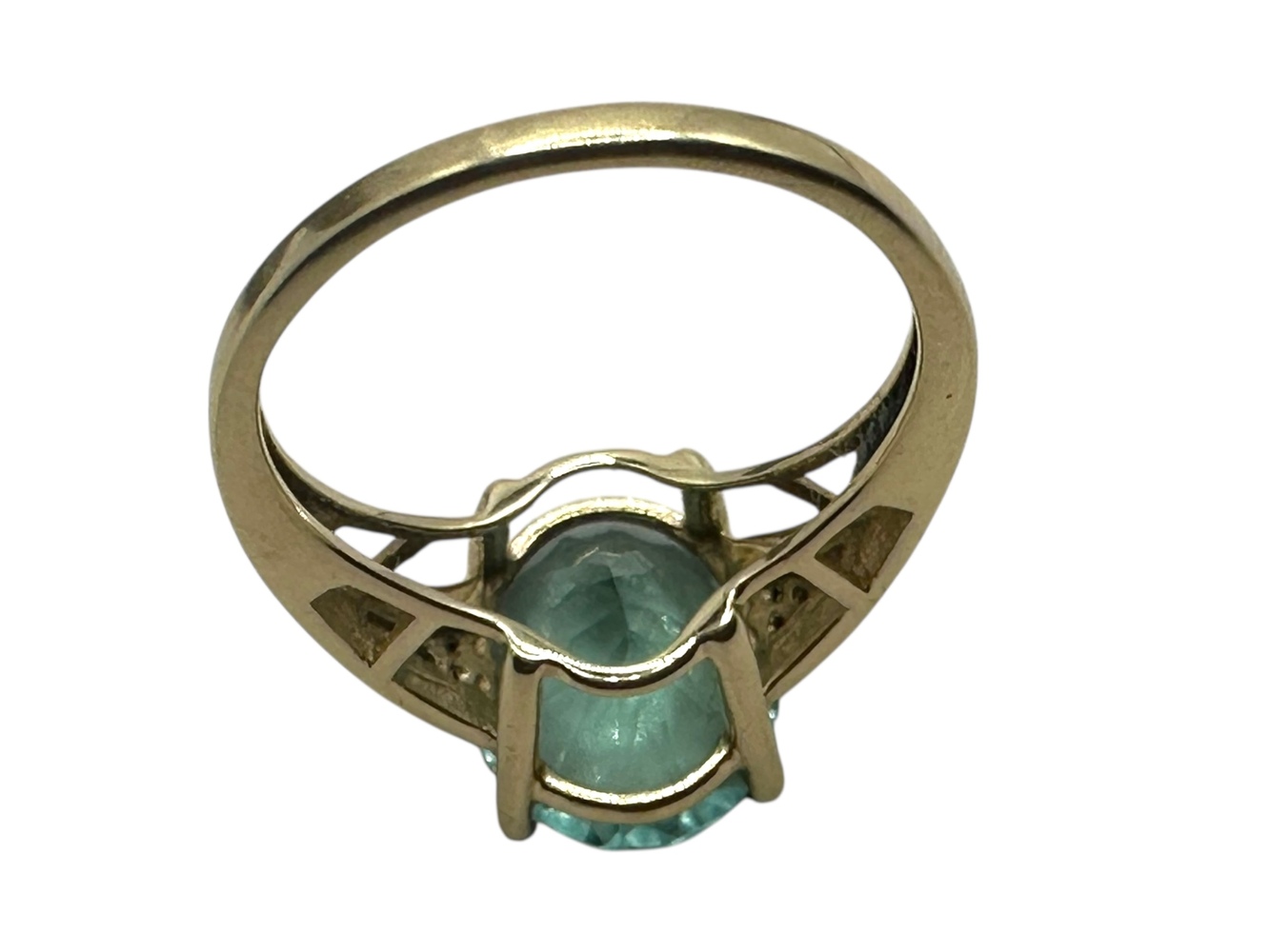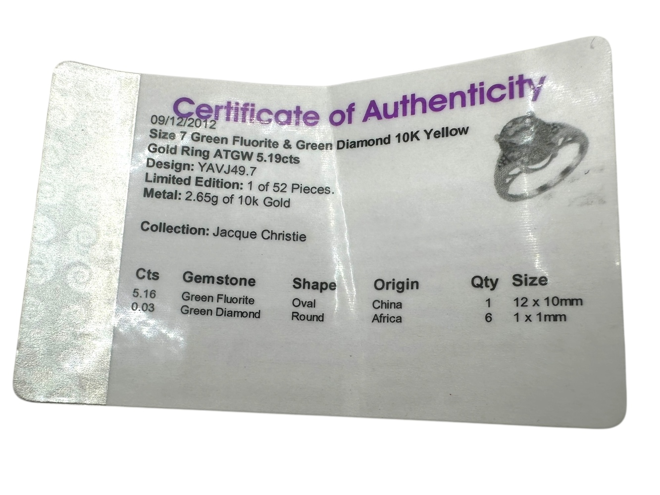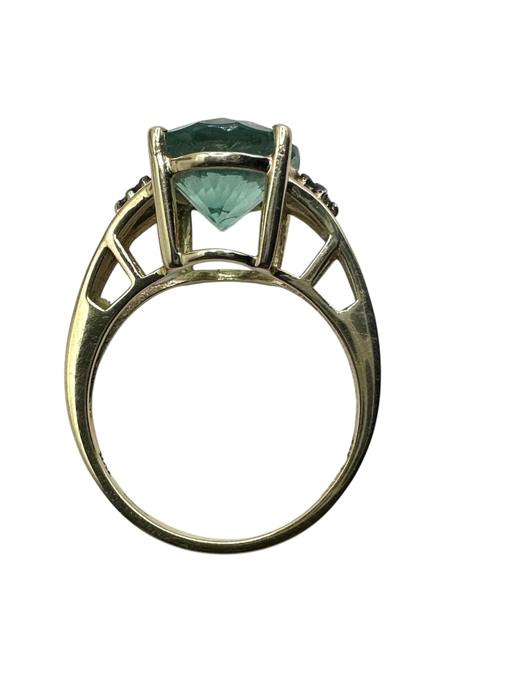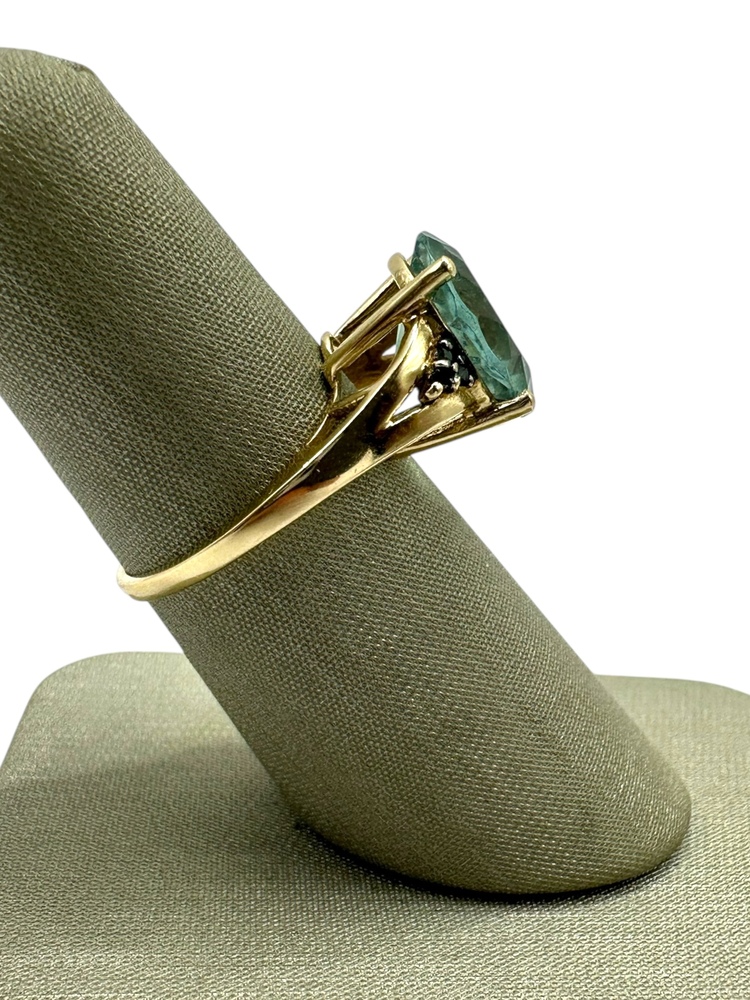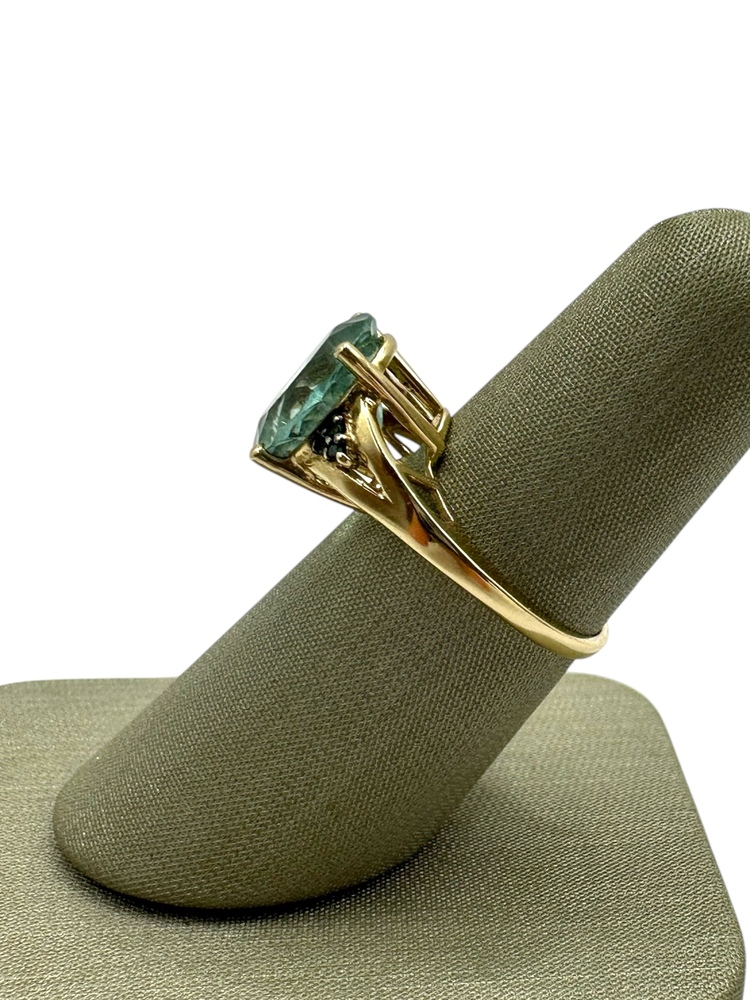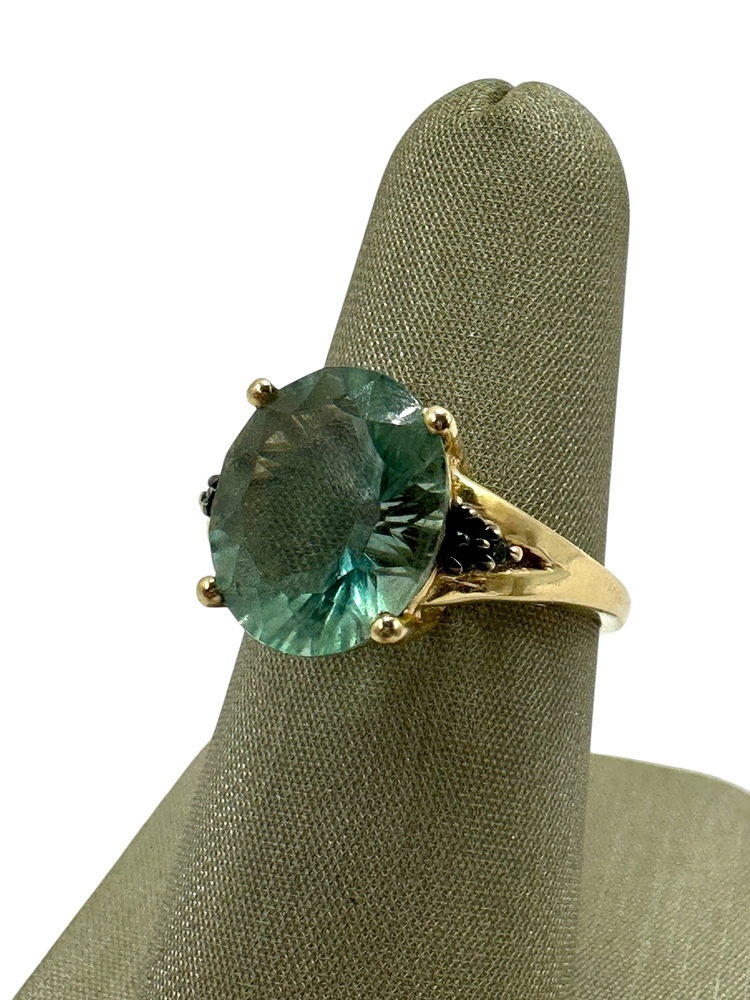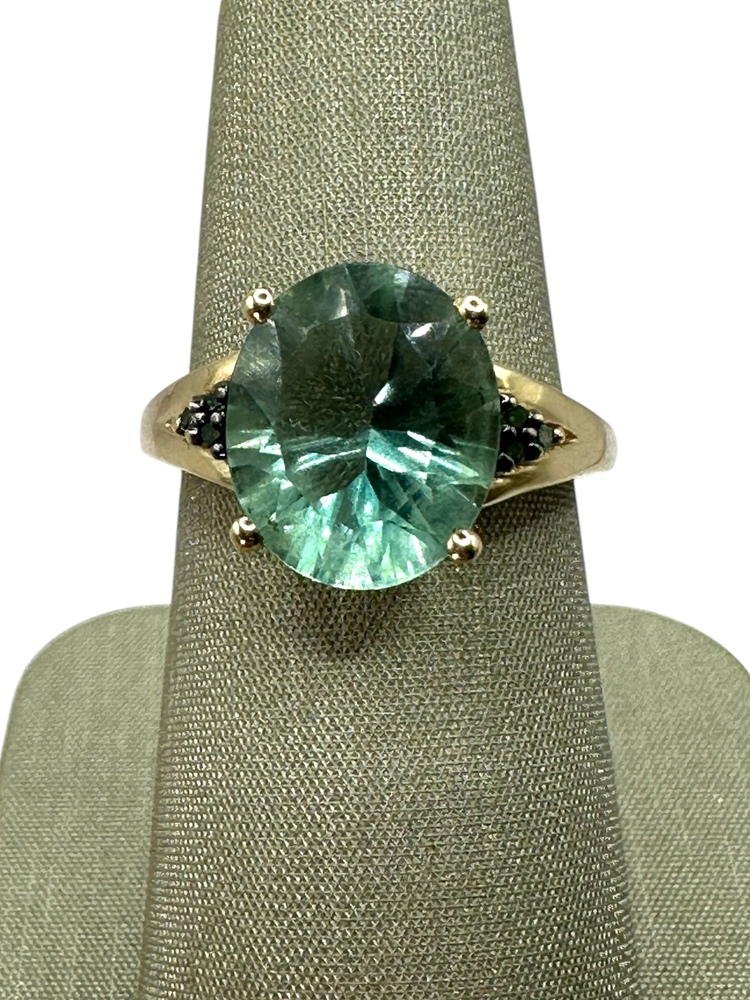 10K Yellow Gold Oval Fluorite & Green Diamond Ring Size 7 3.9 grams
