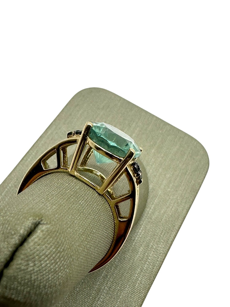 10K Yellow Gold Oval Fluorite & Green Diamond Ring