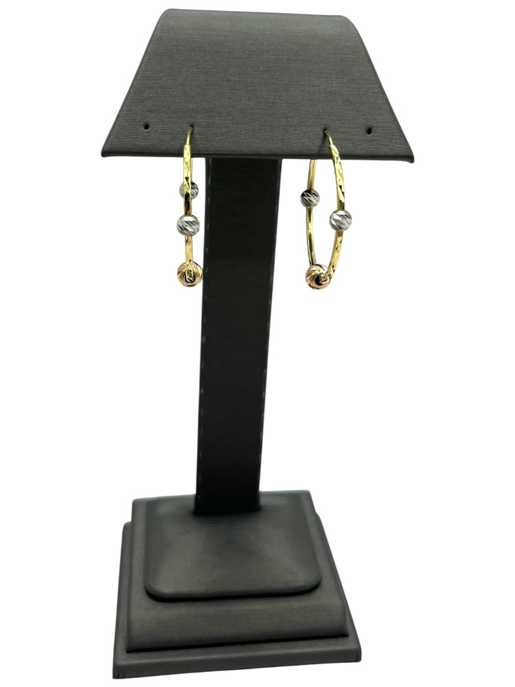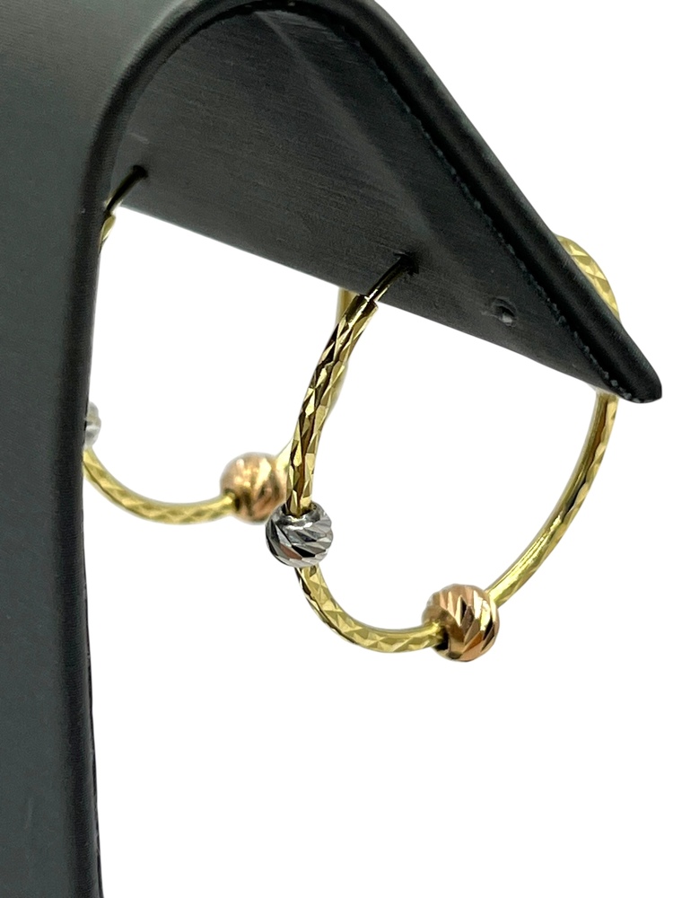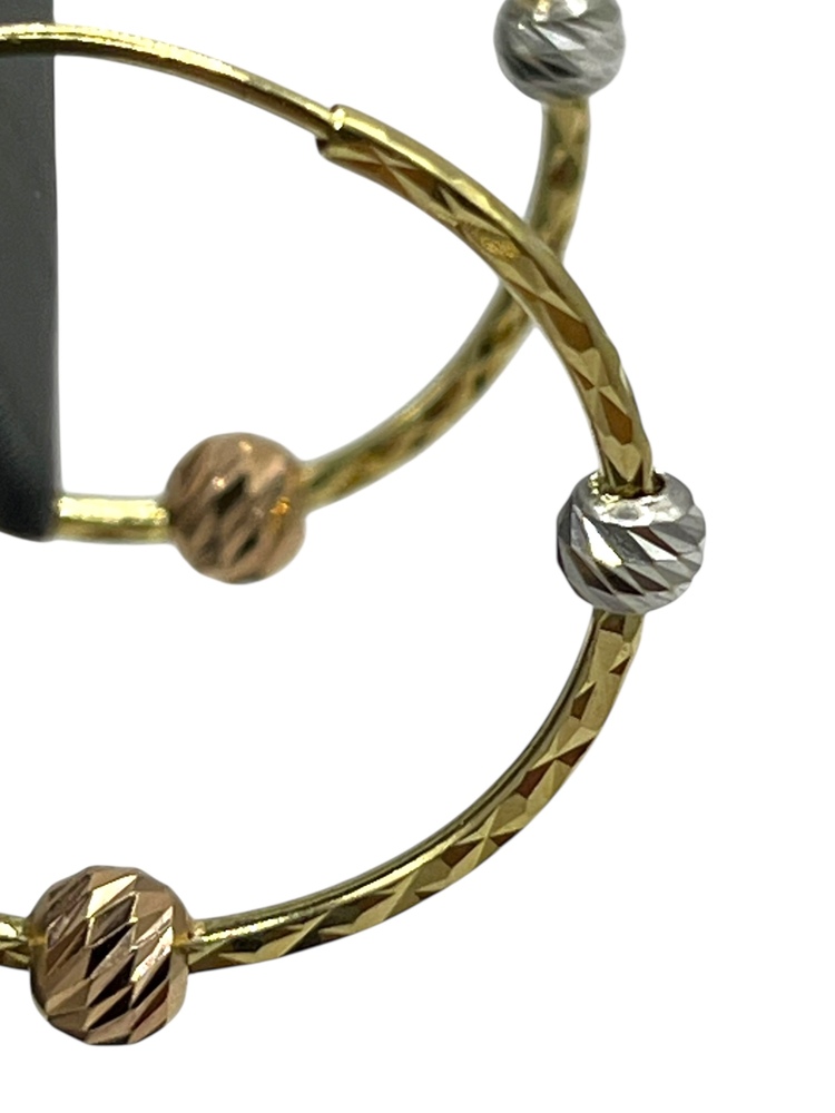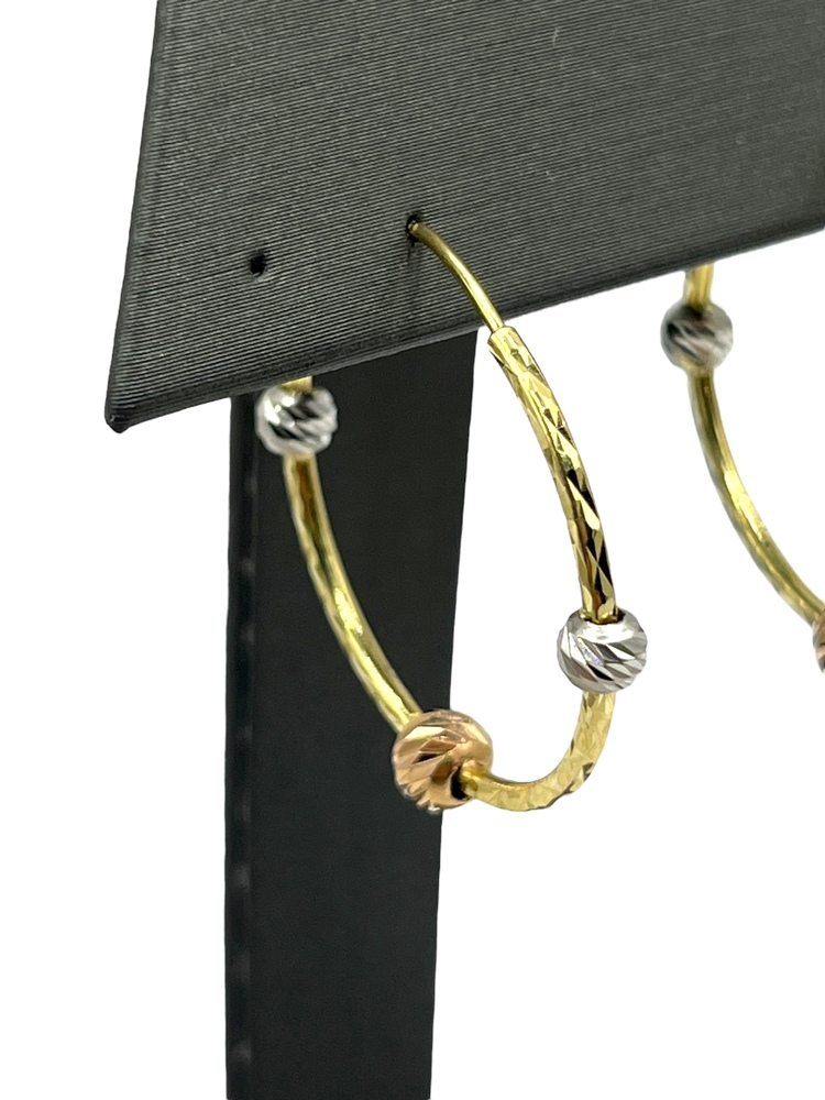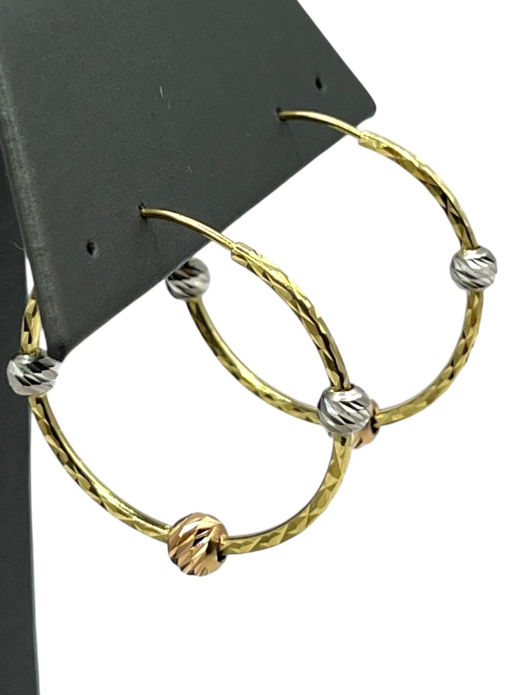 14K Tri-Tone Hoop Balls Earrings 1", 2.7 grams