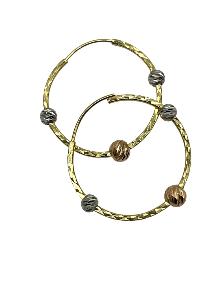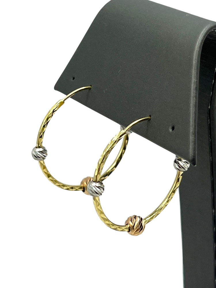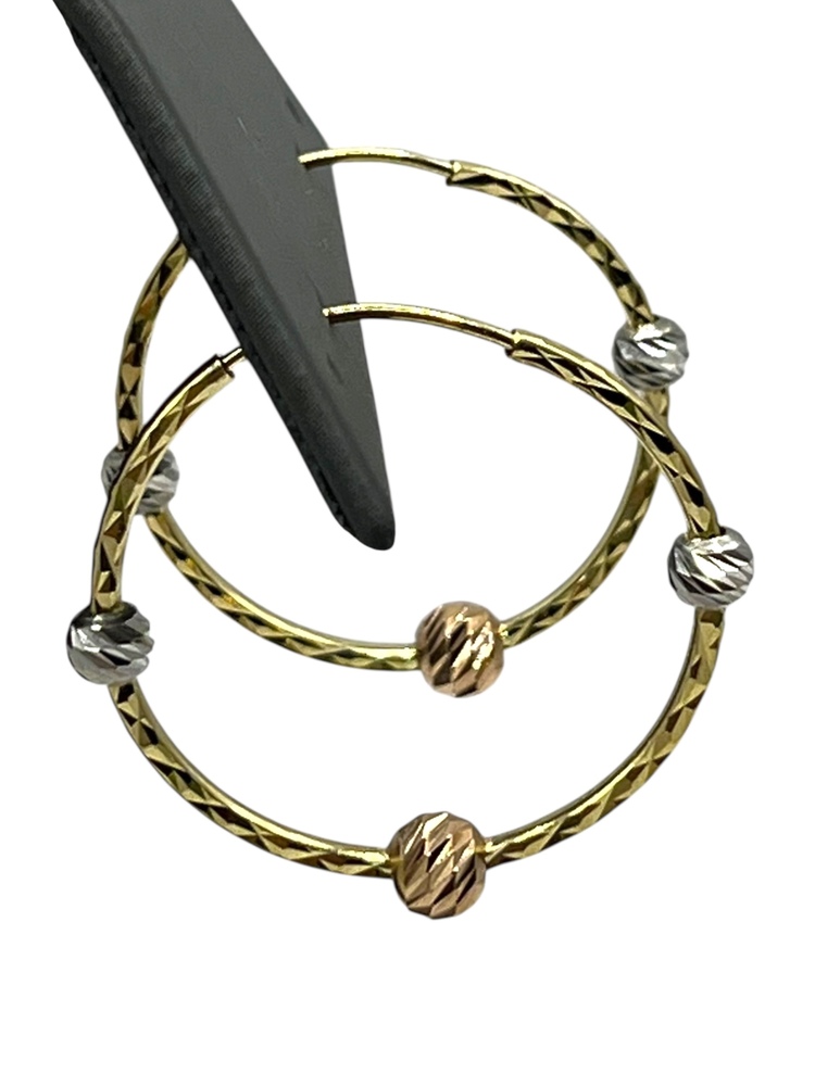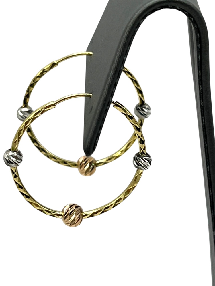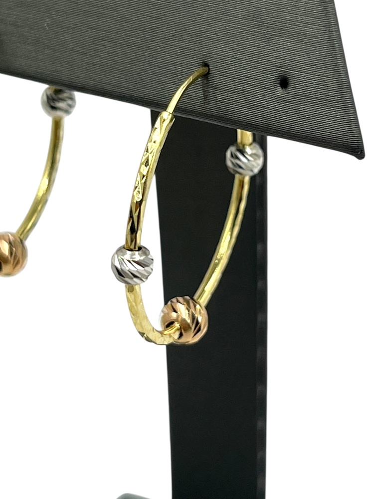 14K Tri-Tone Hoop Balls Earrings 1", 2.7 grams