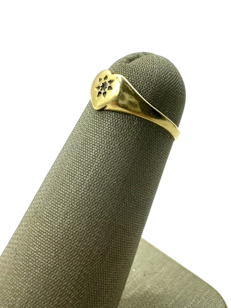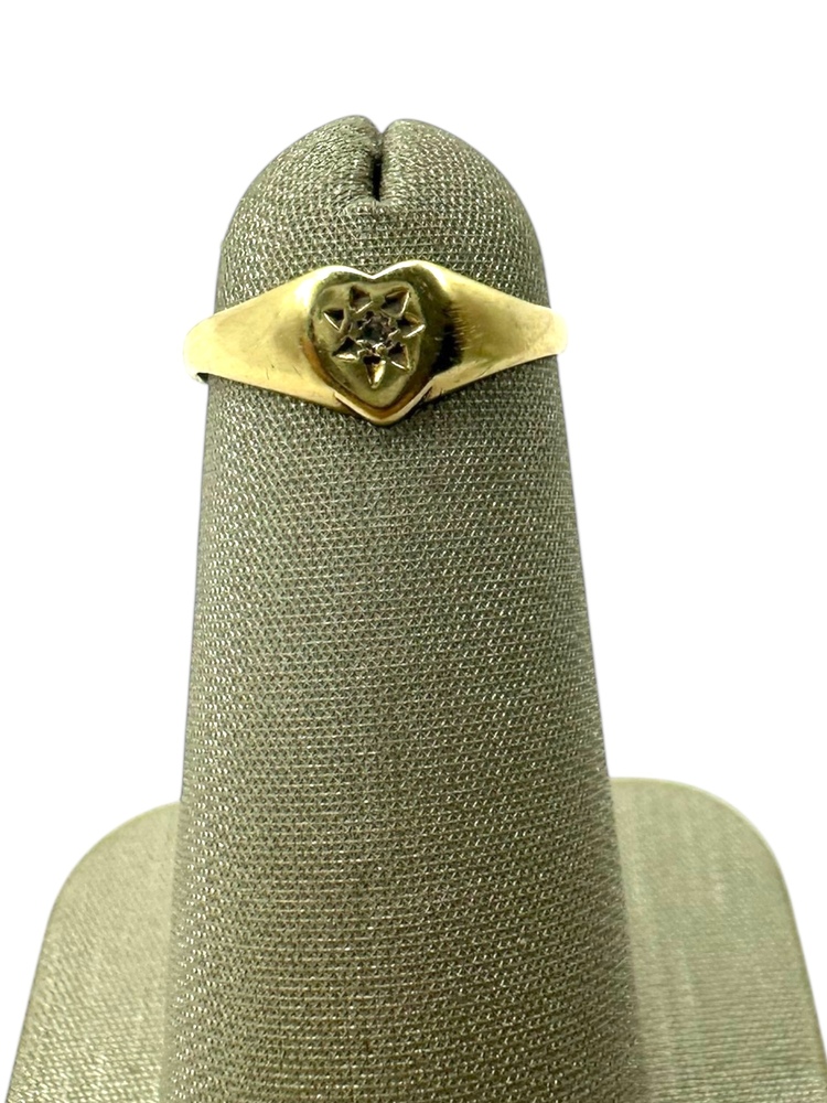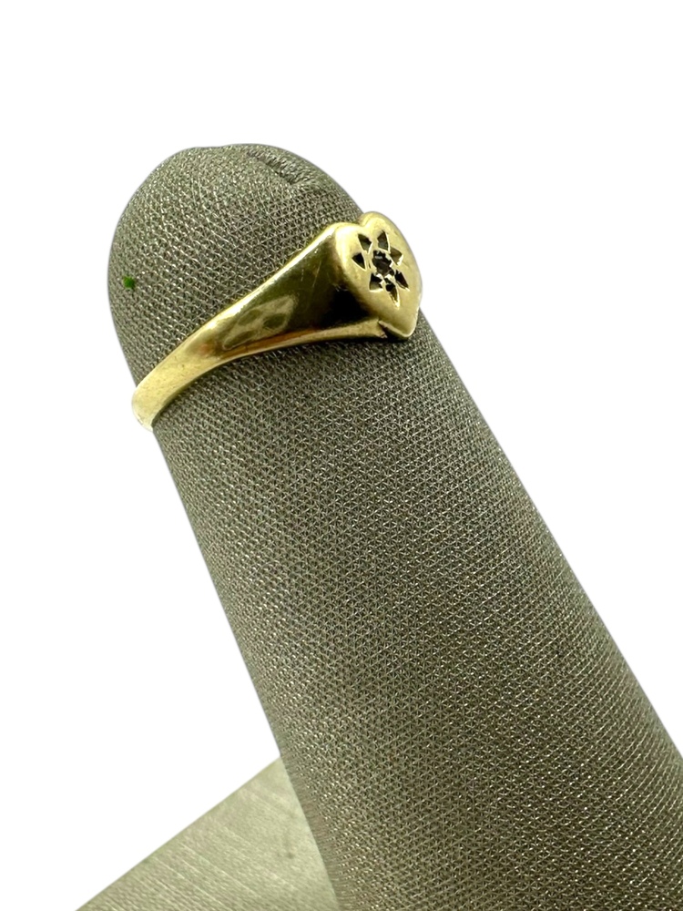 14K Yellow Gold Heart & Single Cut Diamond Ring