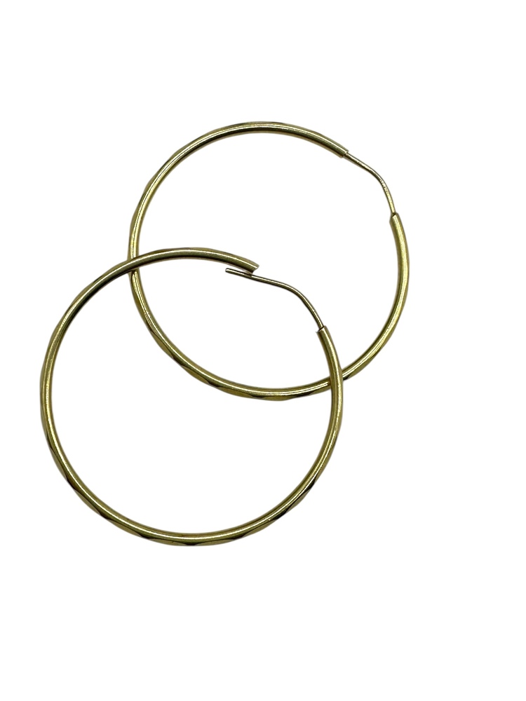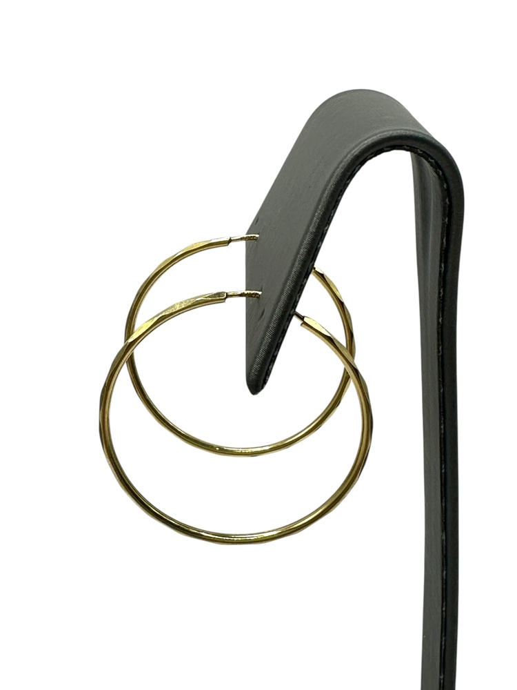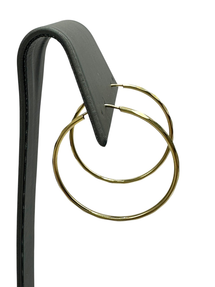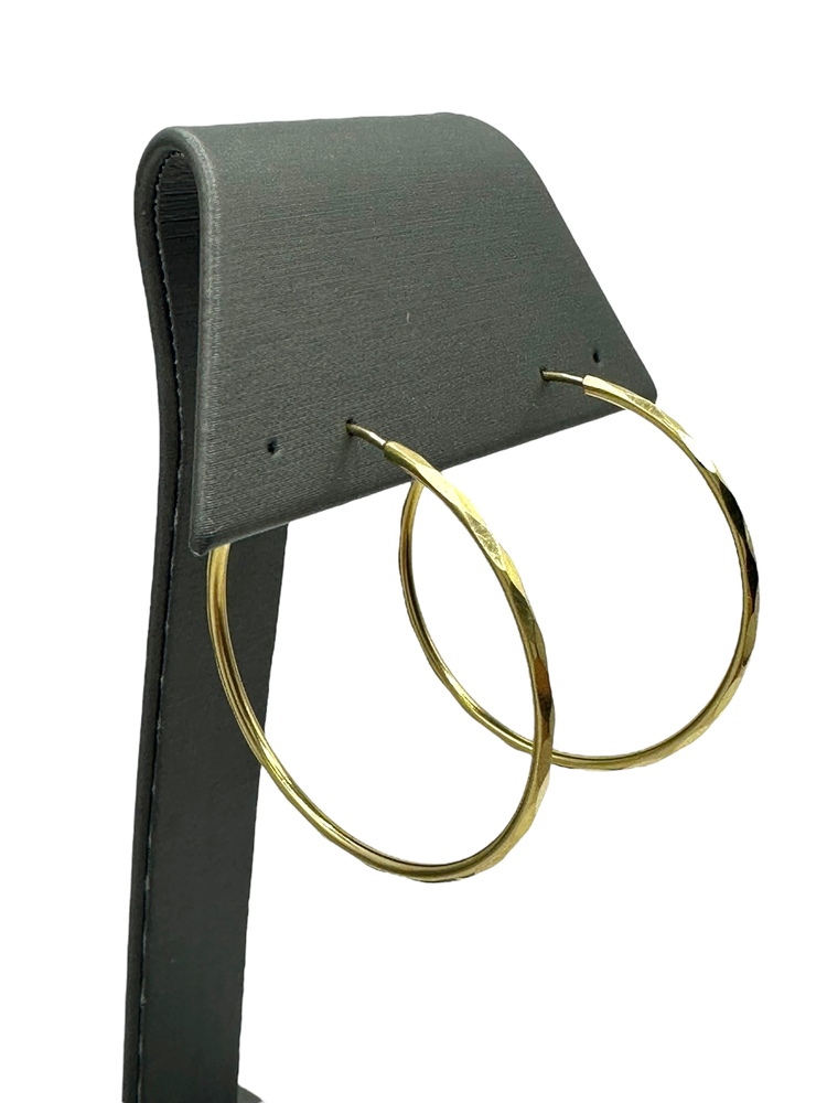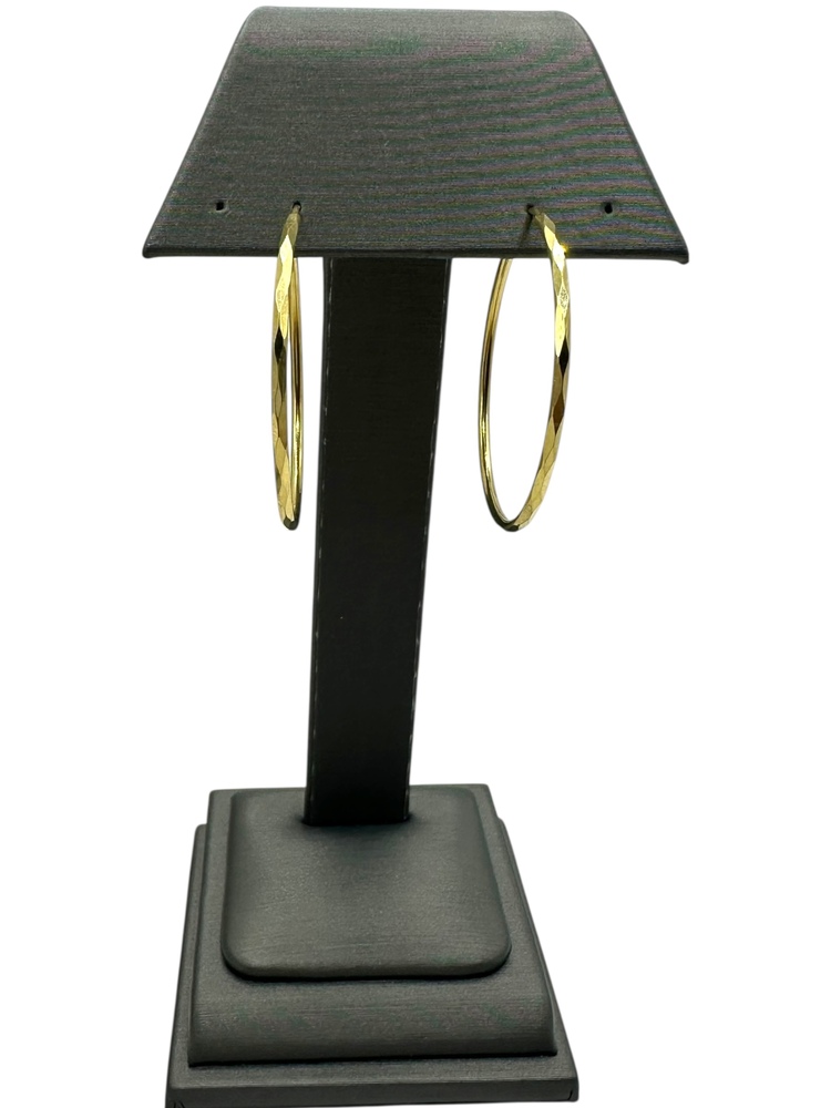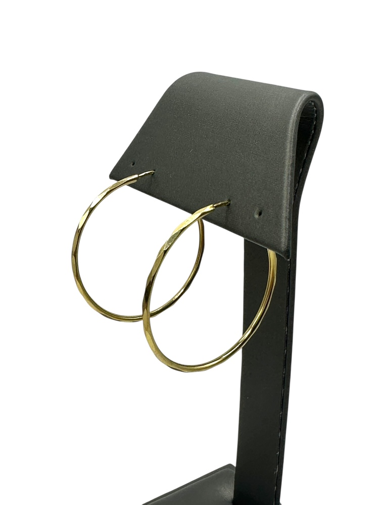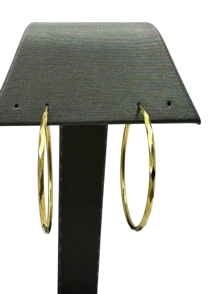 Gold 14kt Hoops 2.70gms Earrings 14K YG Hex Texture Hoop Earrings 1.5" 2.7 grams