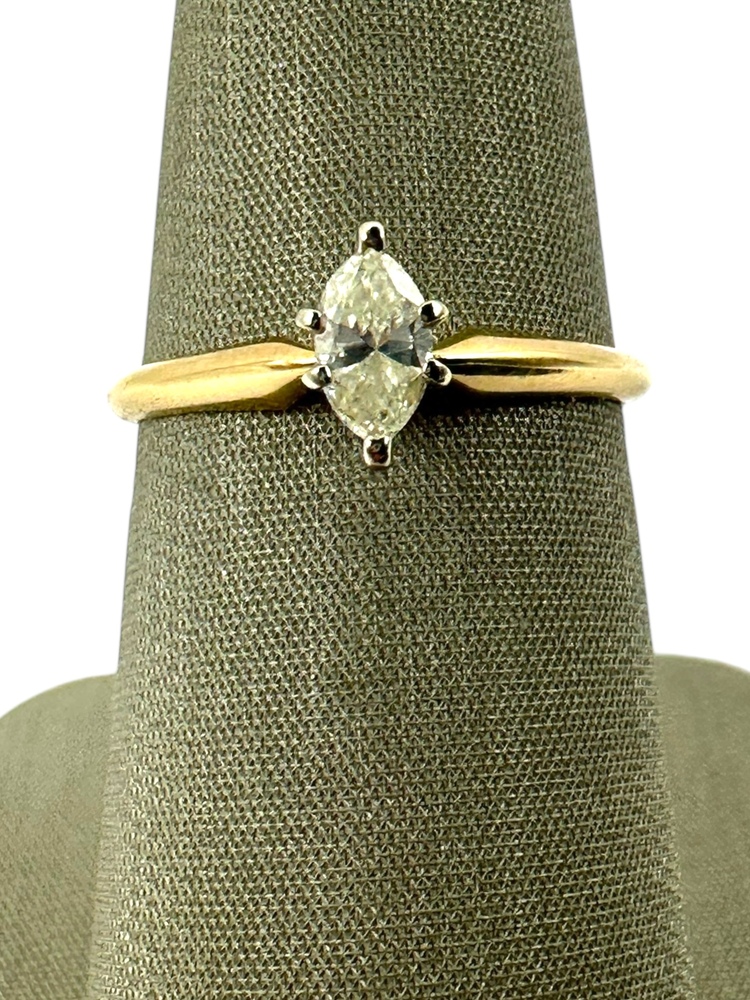 14K Yellow Gold Marquise Diamond Solitaire Ring