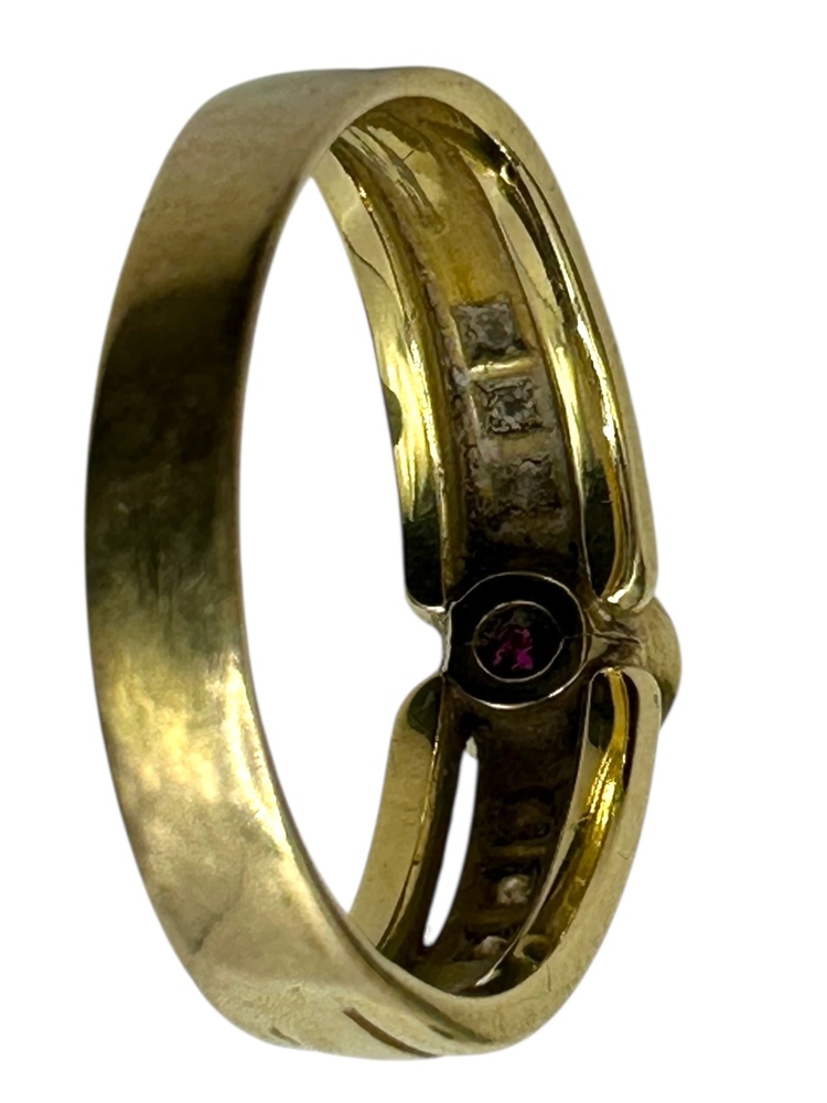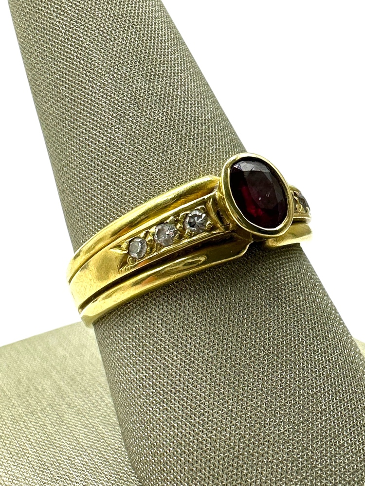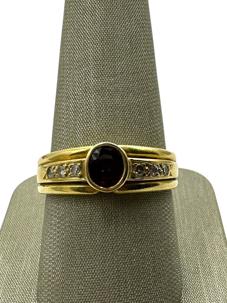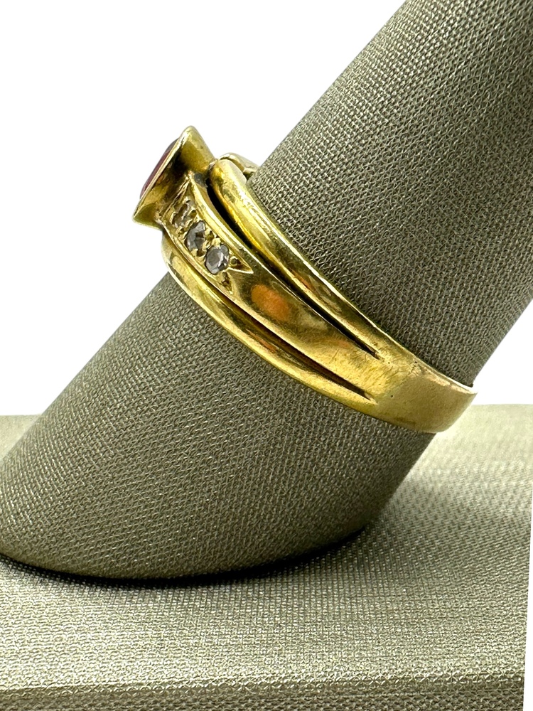 14K Yellow Gold Red Oval Ring with .15cttw Diamonds