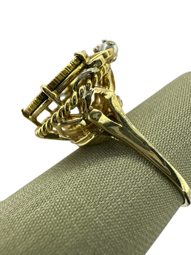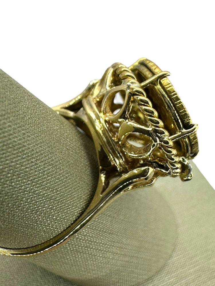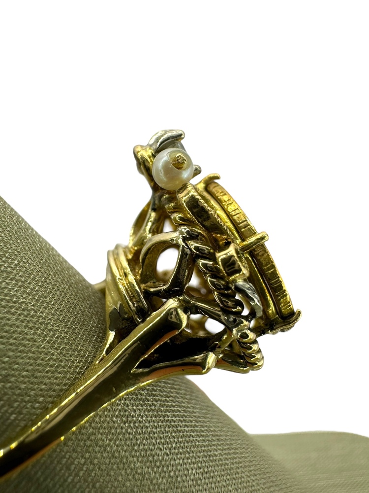 14K Yellow Gold Ring with Dos Peso Gold Coin, 12cttw Diamond & Pearls
