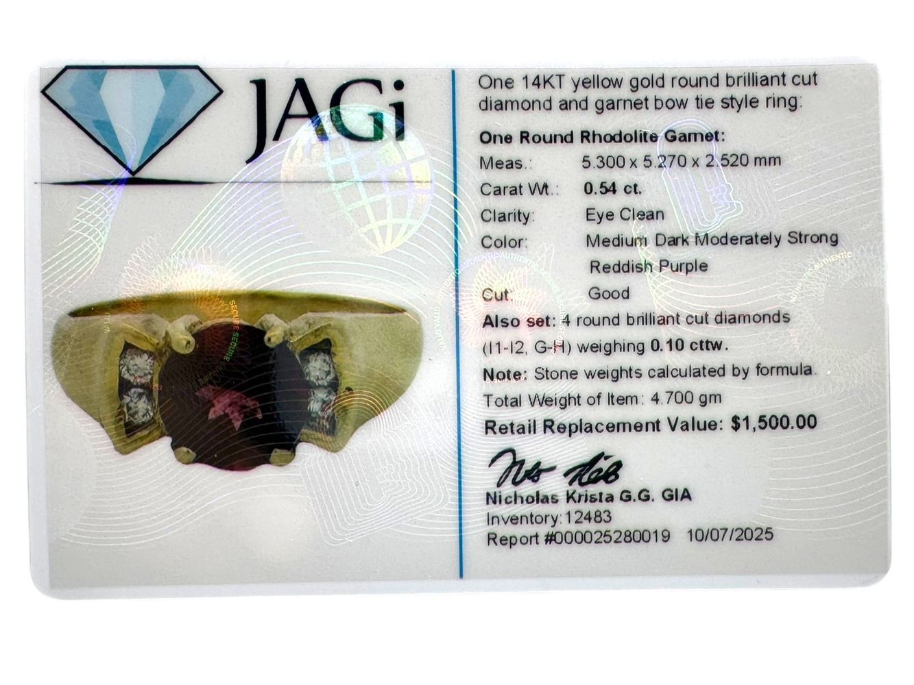 14K Yellow Gold Round Rhodolite Garnet & .10cttw Diamond Ring