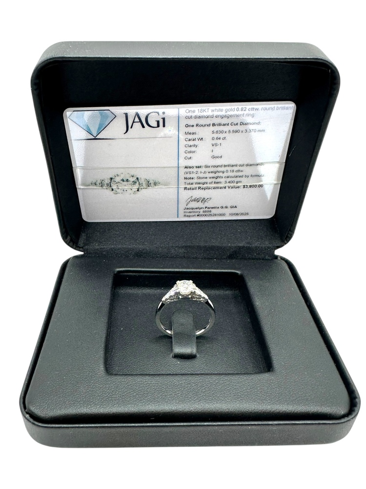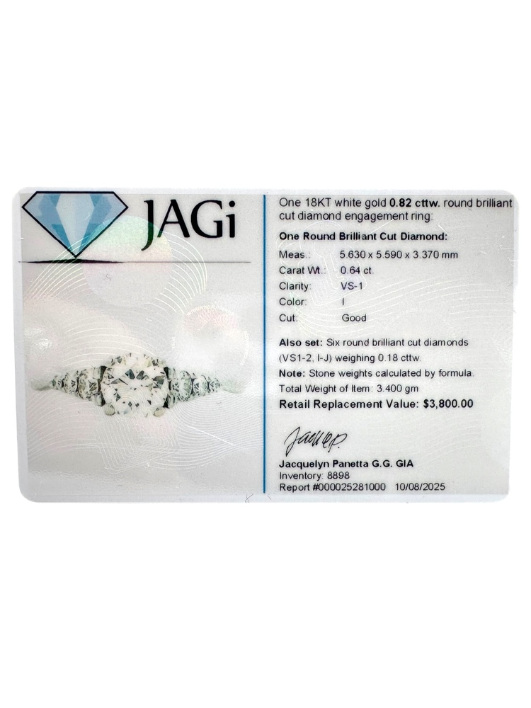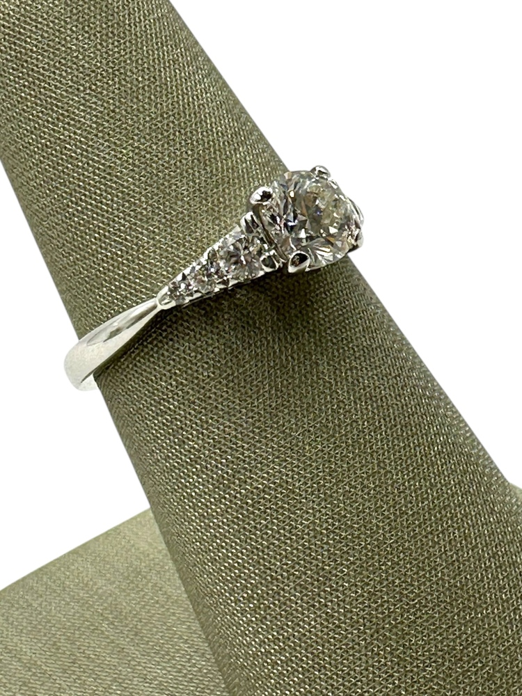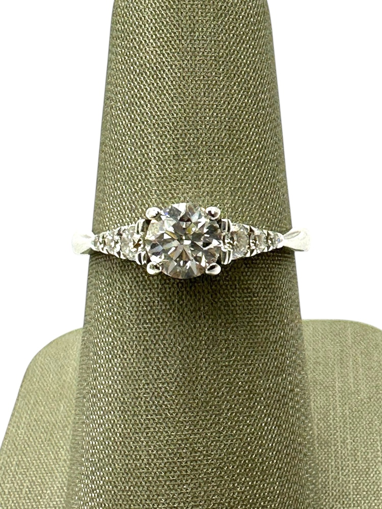 18K White Gold & .82cttw Diamond (.64 cttw center) with side Diamonds Ring
