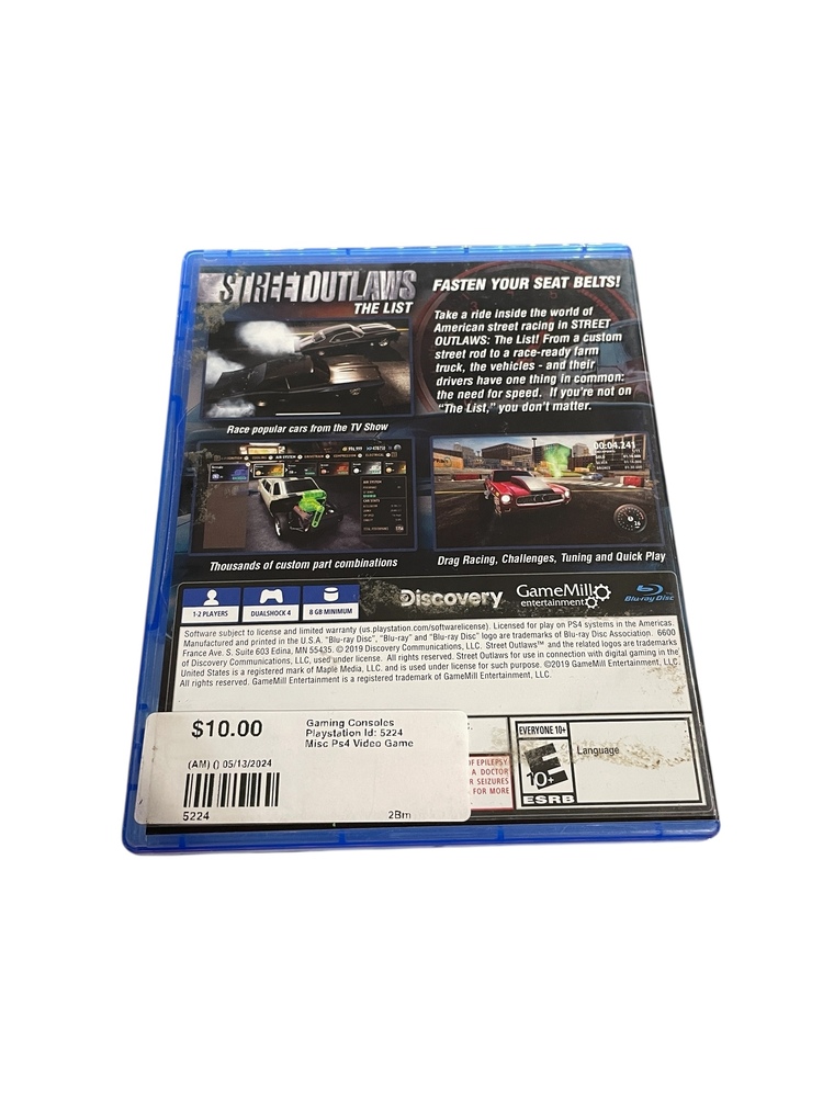 Playstation 4 disc game. Street Outlaws: The List