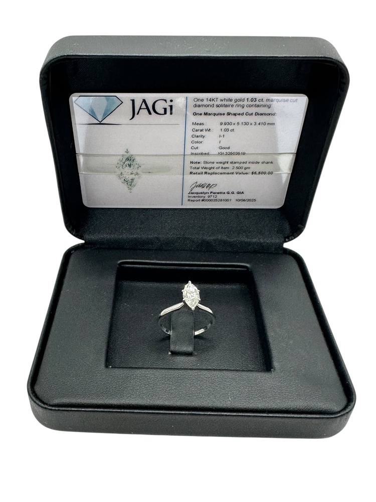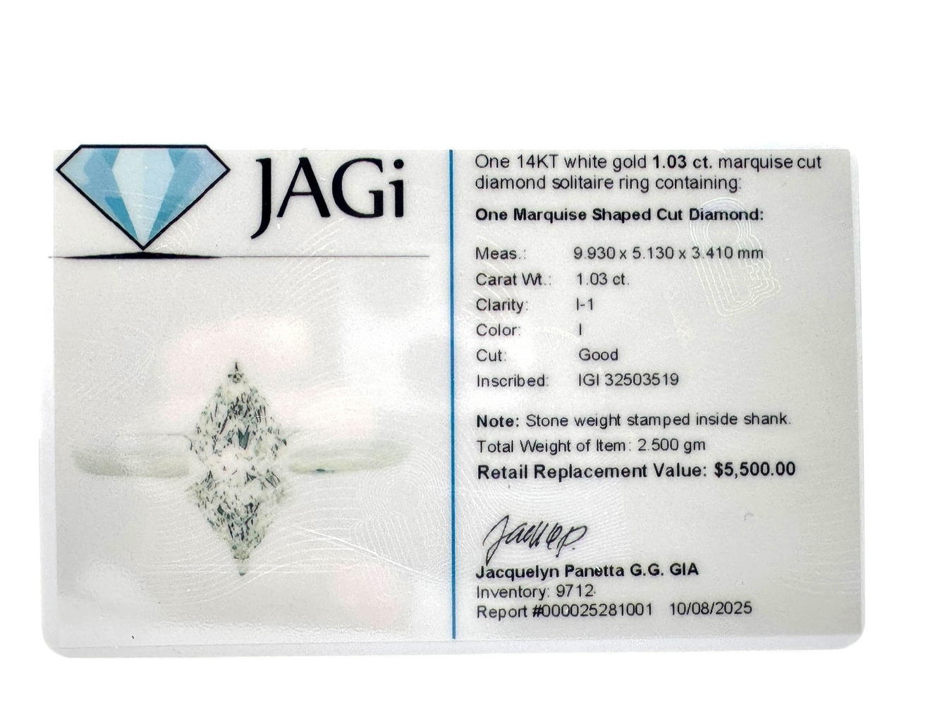 14K White Gold Marquise Cut 1.03cttw Diamond Solitaire Ring