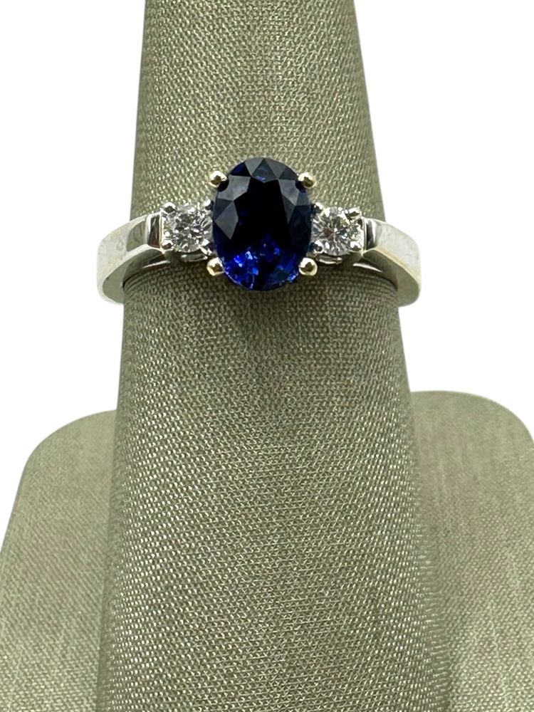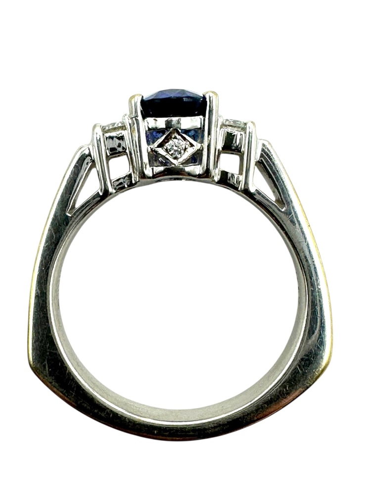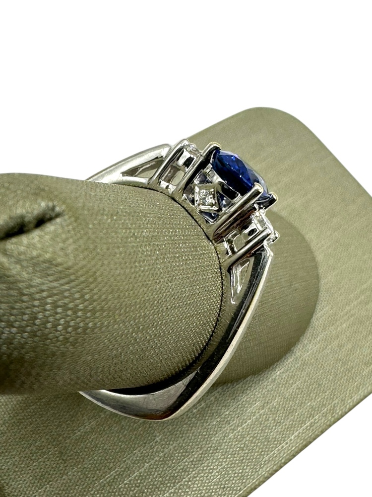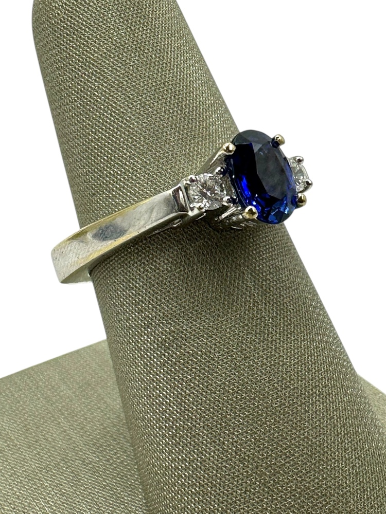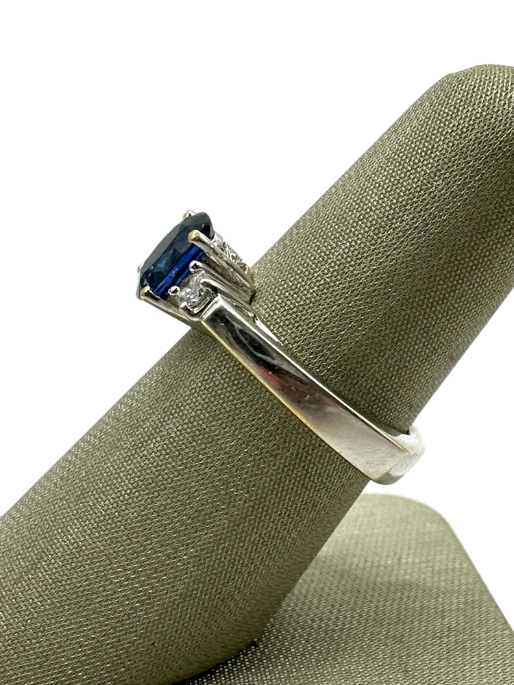 18K White Gold Sapphire & Side .19cttw Diamonds Ring