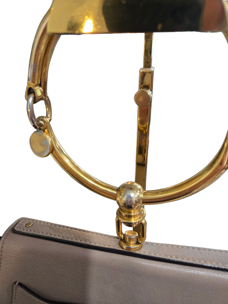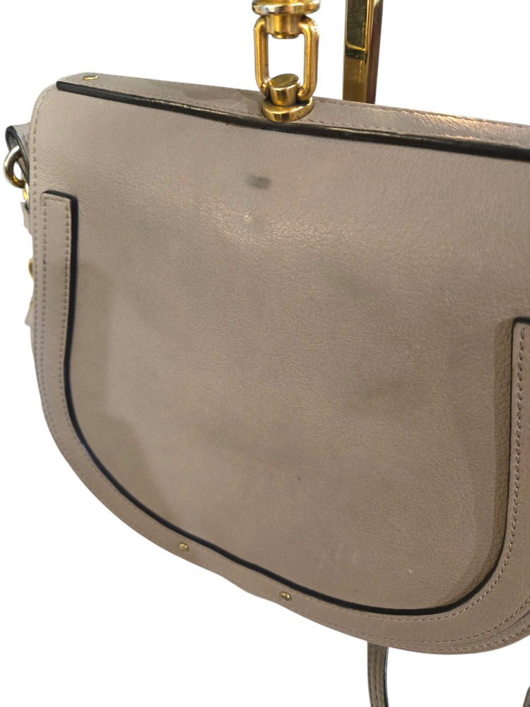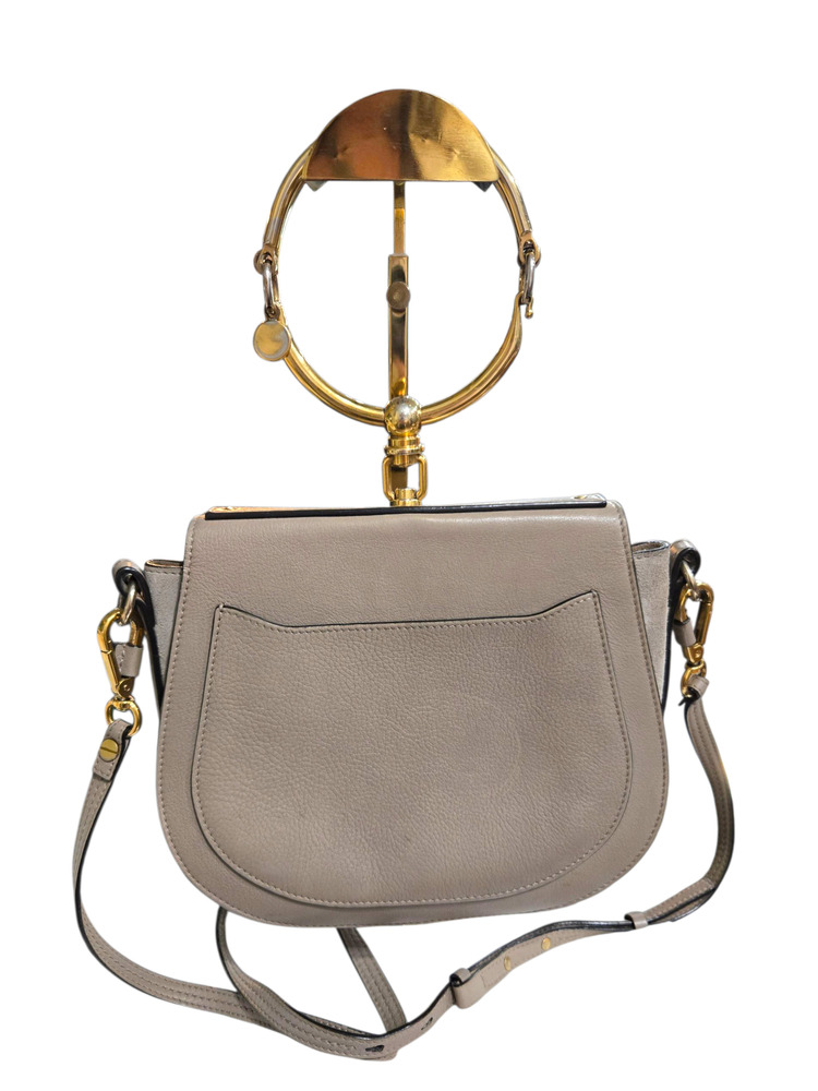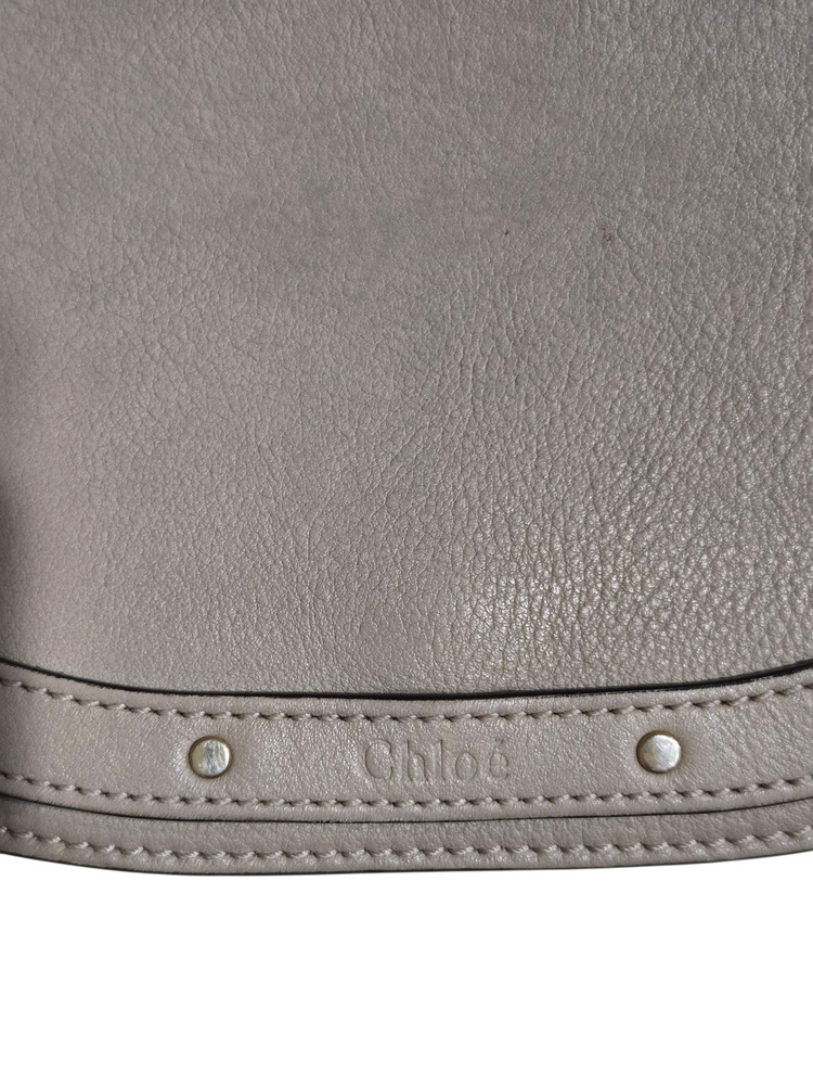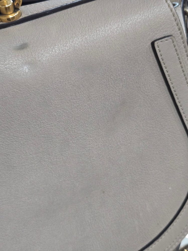 Chloe Bracelet Bag w/ Crossbody Shoulder Bag Motty Grey w/ Box & Dust Bag. Pen marks on interior, hardware gold tone is fading in various spots, some marks on bag from round metal handle. Please inspect photos thoroughly.