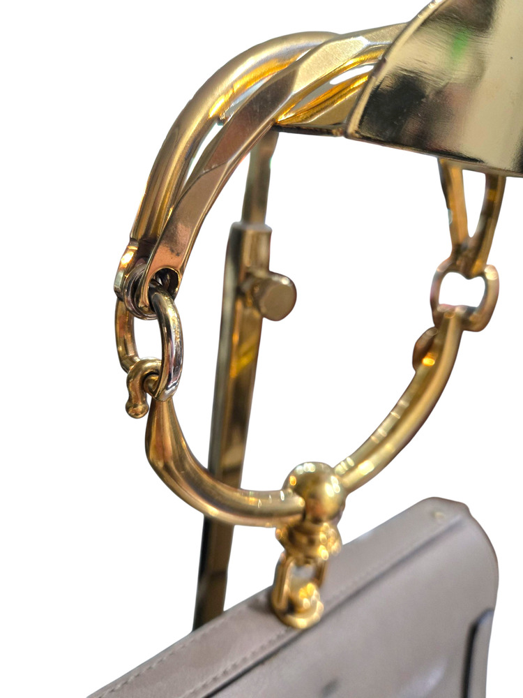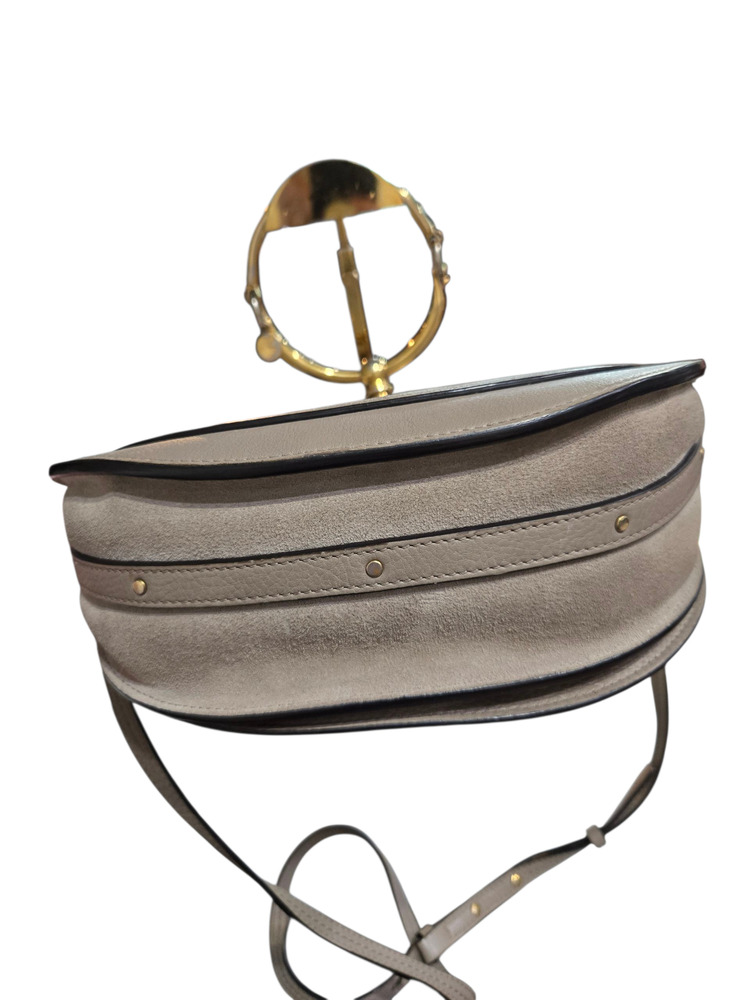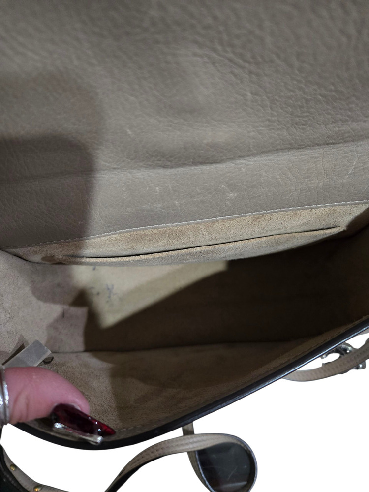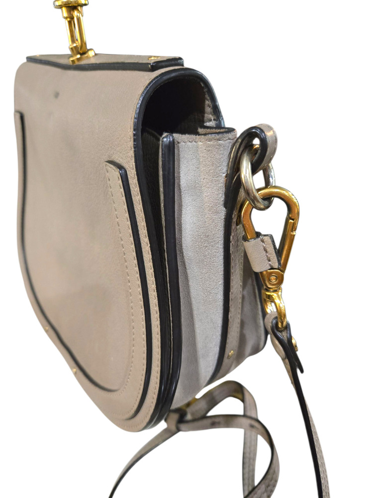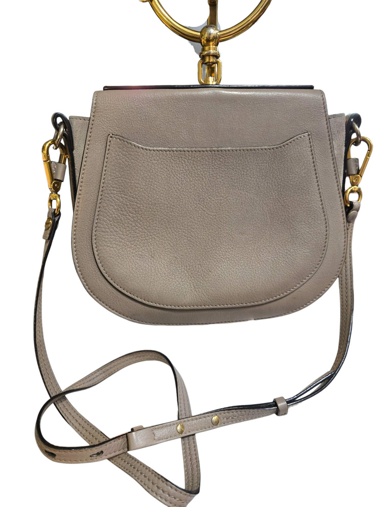 Chloe Bracelet Bag w/ Crossbody Shoulder Bag Motty Grey w/ Box & Dust Bag. Pen marks on interior, hardware gold tone is fading in various spots, some marks on bag from round metal handle. Please inspect photos thoroughly.