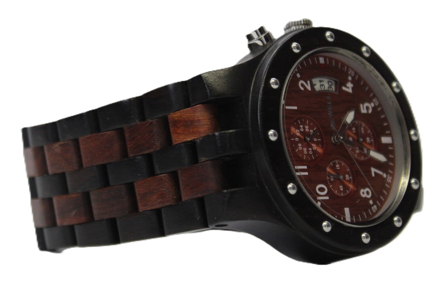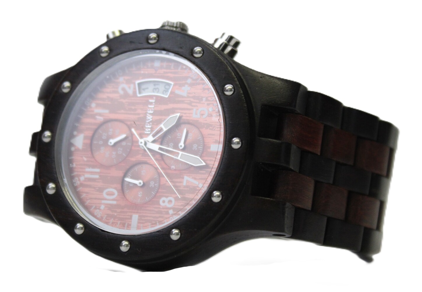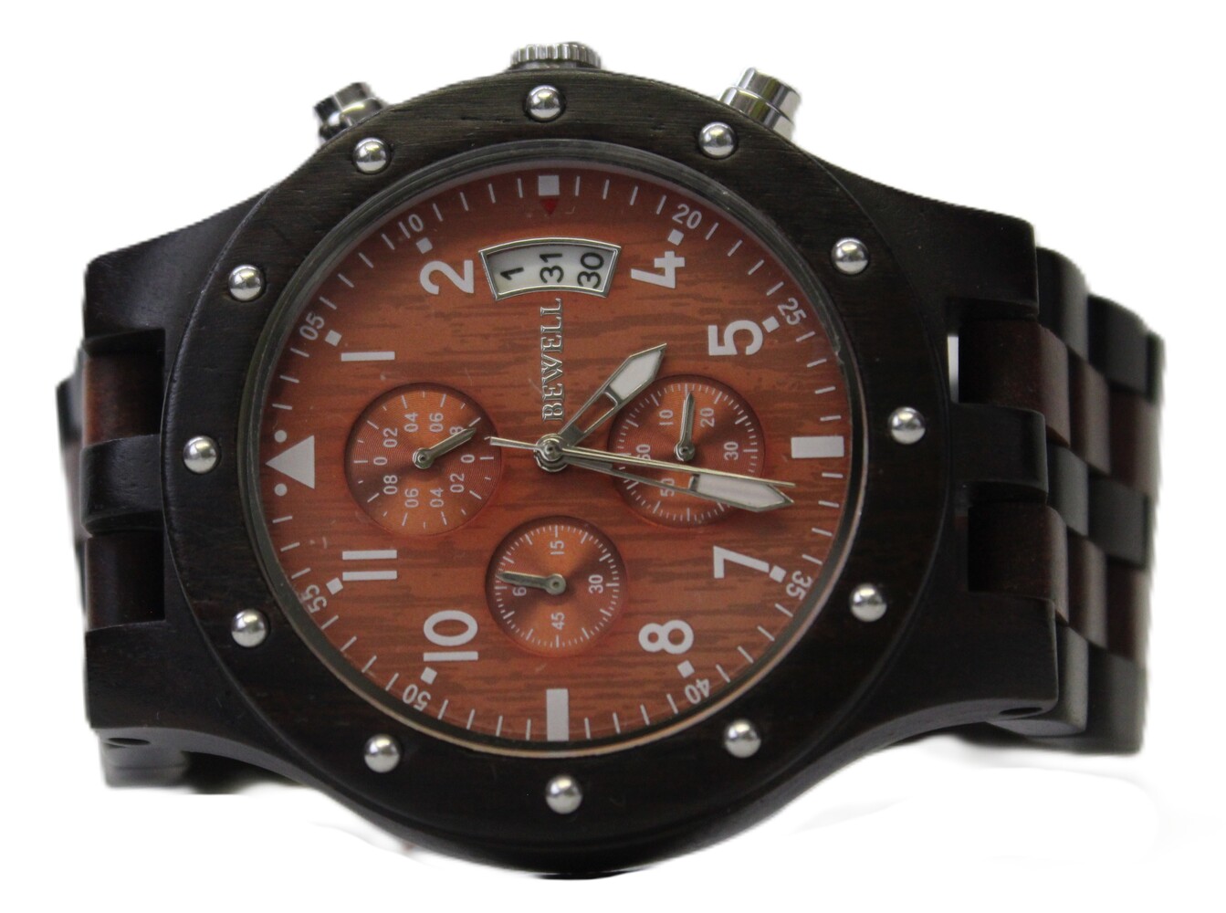 The Bewell Men's Chronograph Watch features a unique, lightweight wooden design. With a 45mm case, this watch ensures durability and comfort. It includes a chronograph and quartz movement for accurate timekeeping. A perfect blend of style and functionality, ideal for daily wear or special events.