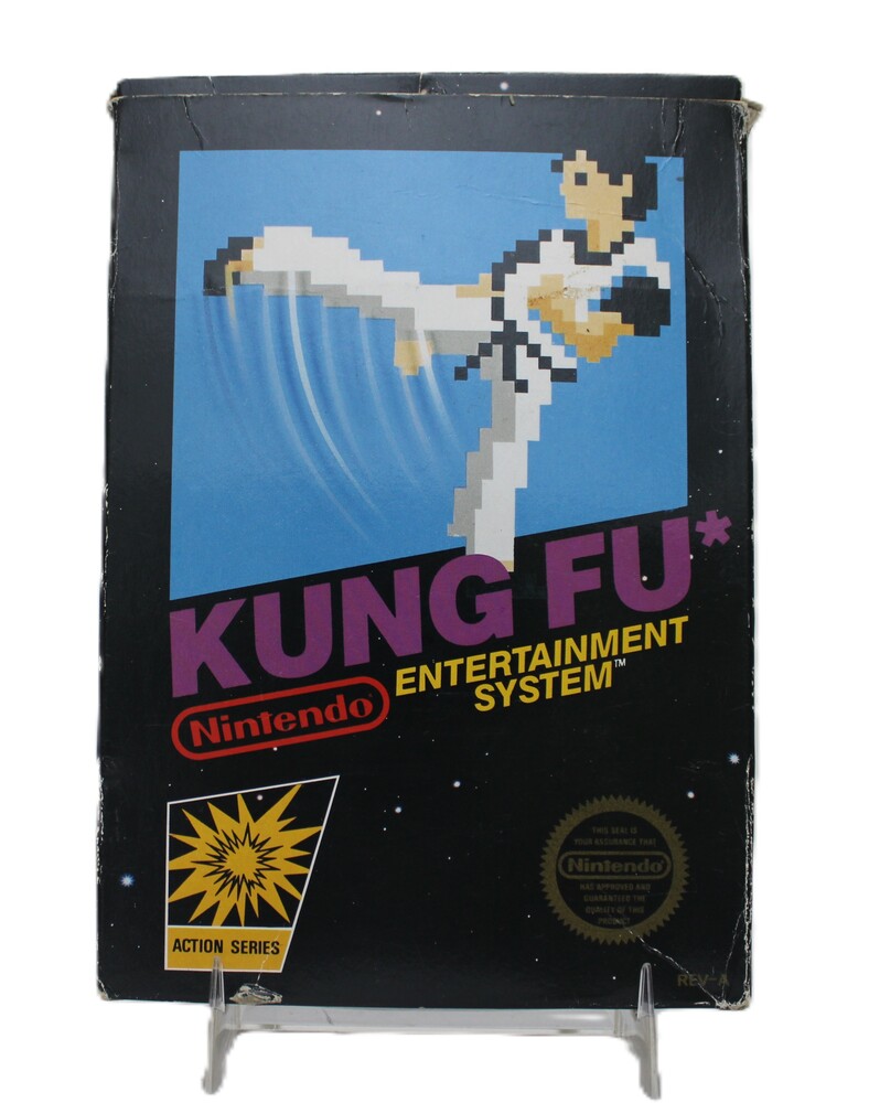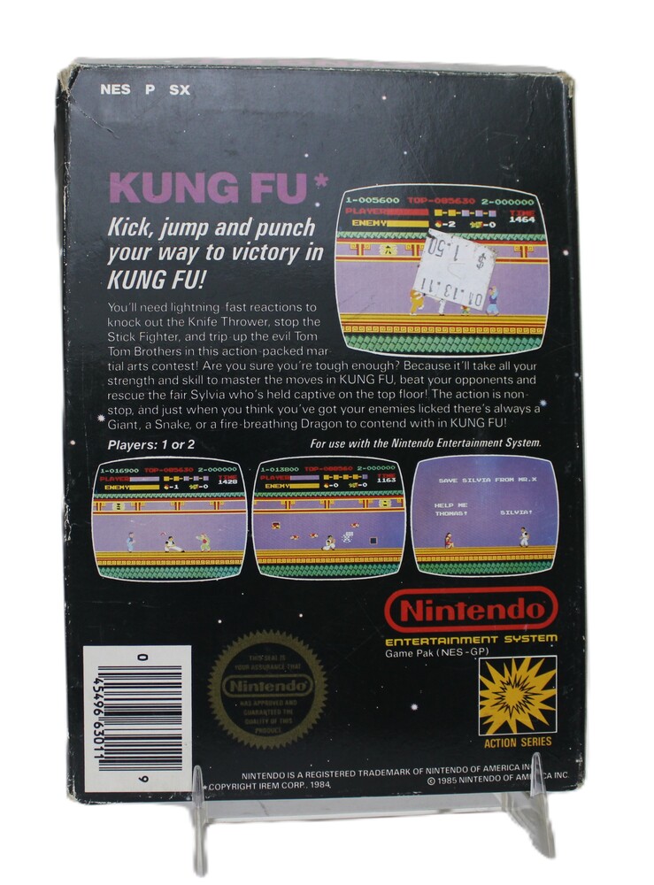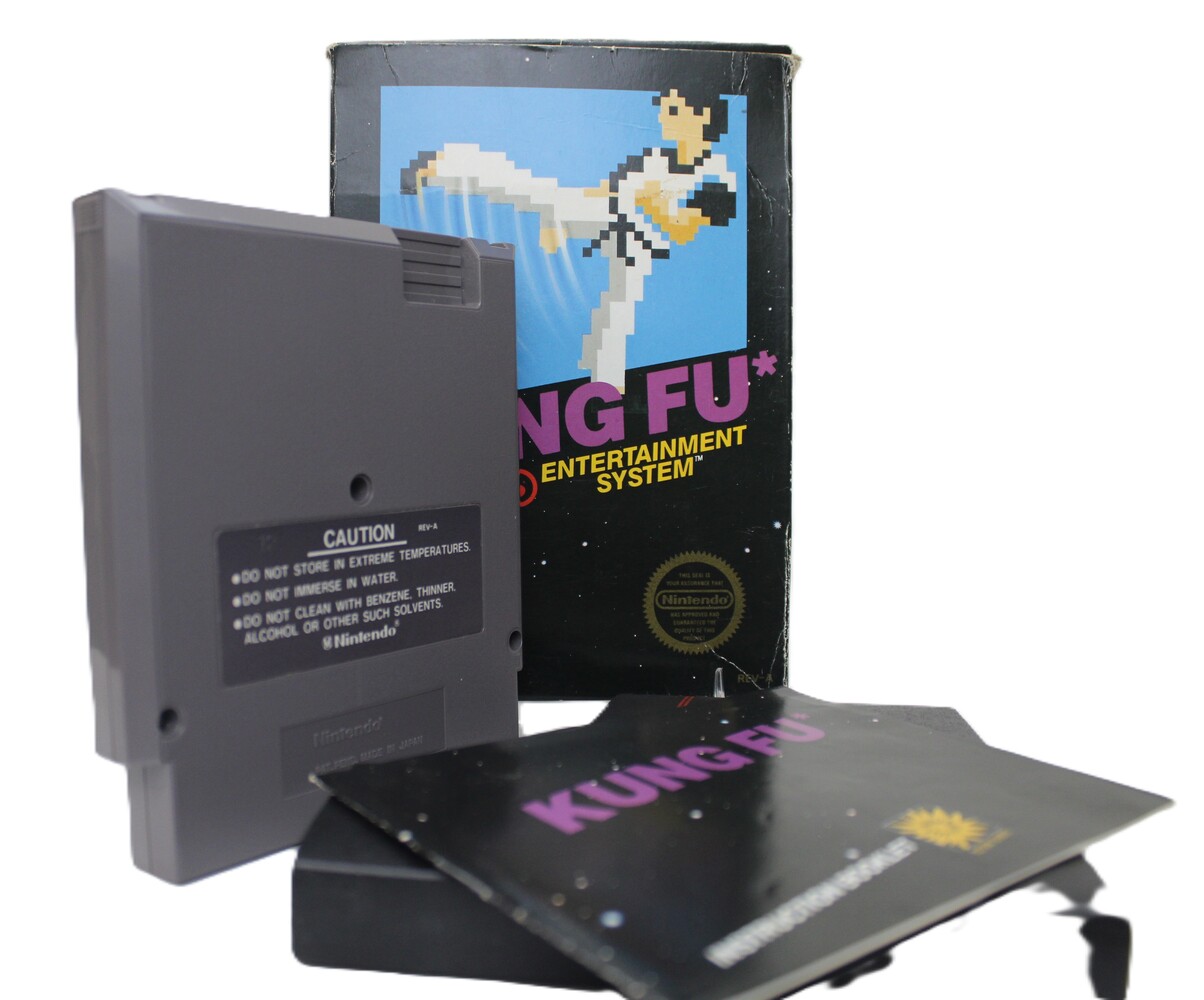 Kung Fu, a classic action game for the Nintendo Entertainment System (1985), is a thrilling single-player martial arts adventure. Featuring immersive gameplay, it requires strategy and quick reflexes. This offer includes the original game cartridge, box, and manual, providing a nostalgic, complete gaming experience.