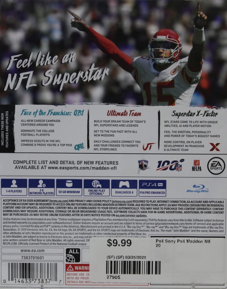 Experience exhilarating gameplay with Sony PS4 Madden NFL 20. Enjoy advanced features, stunning graphics, and immersive NFL action. Limited to 25 words.