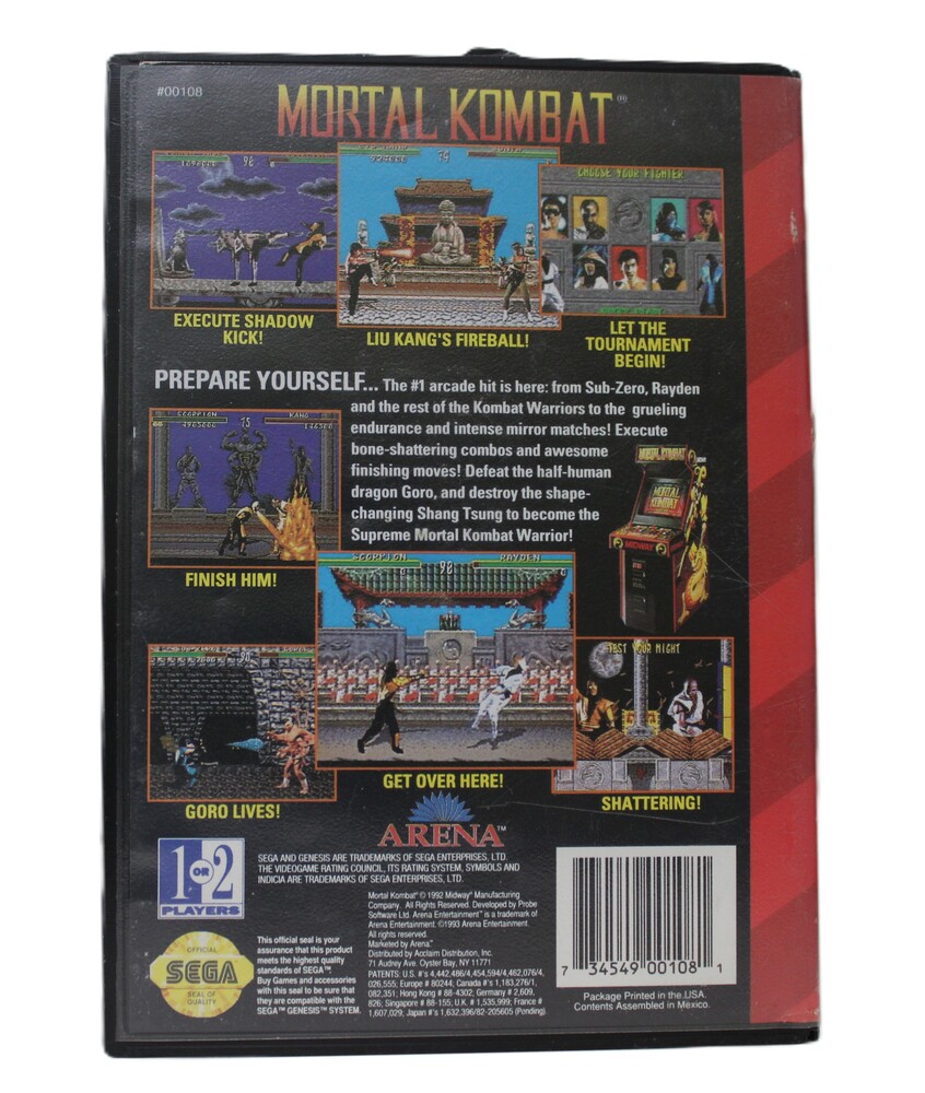 Sega Genesis Mortal Kombat is a 1992 iconic fighting game. Comes with original case, featuring diverse characters, unique moves, fatalities and intense one-on-one combat. Requires mastery of special moves for victory. Fan-favorite for nostalgic gamers. Not suitable for children due to violent content. Essential for classic game collections.