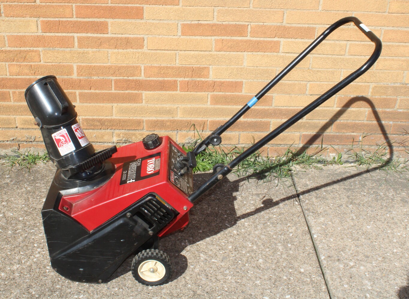 The Toro CCR 2400 E Snowblower features a two-stroke engine with electric start, delivering powerful snow removal. Efficient on both wet and dry snow, it possesses a 24-inch clearing width. The machine's compact design offers easy storage and maneuverability.