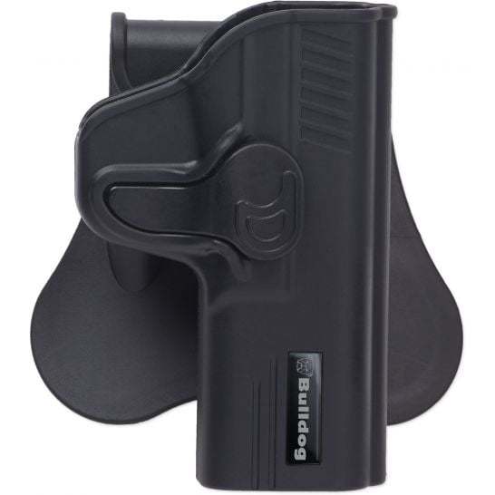 Bulldog's Rapid Release Holster is suitable for civilian, duty and military use. The holster is made of durable, high-tech polymer material with gun-specific design that is fully adjustable to multiple draw positions. Its specially designed locking mechanism provides safe and secure "Level II" retention while offering a one finger "Quick Draw" release. This model is compatible with Glock 43 firearm.