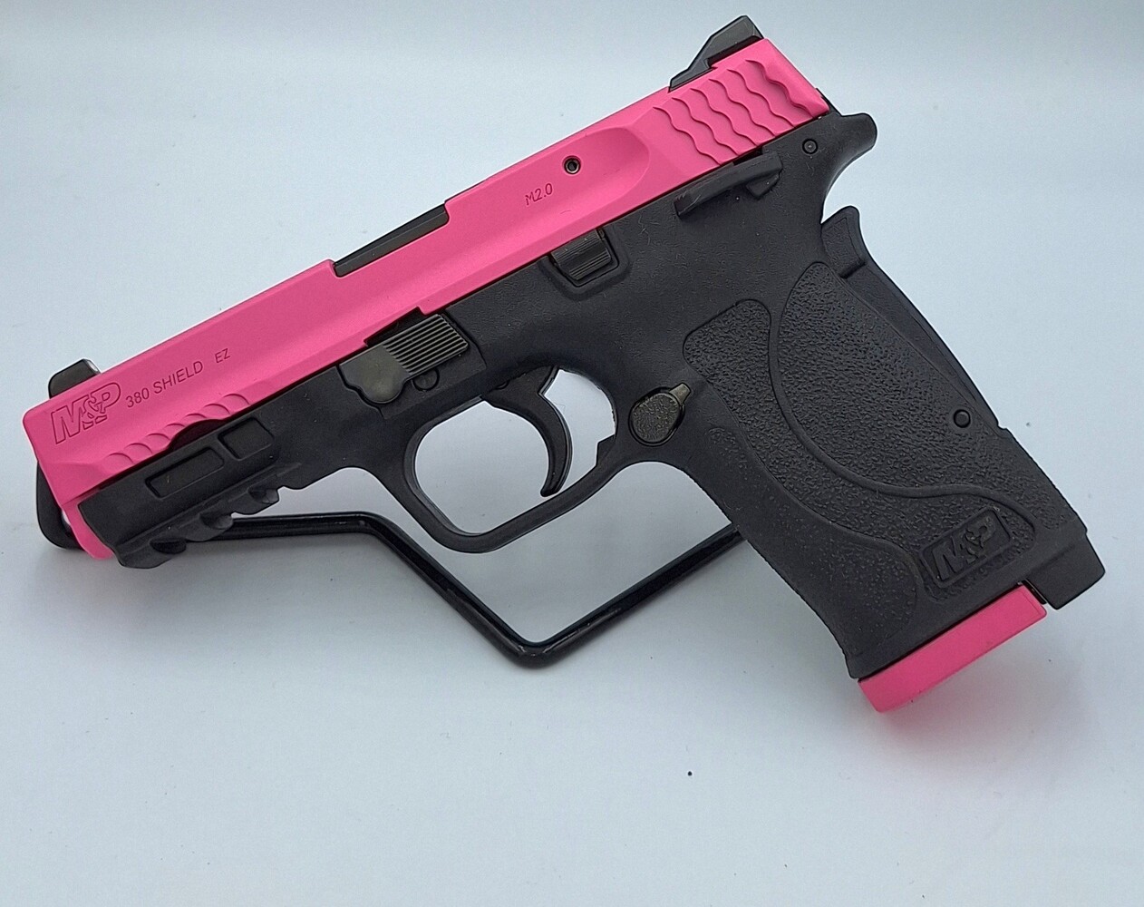 Log#9303 SMITH & WESSON 380 SHIELD EZ 380 Cal. PINK AND BLACK PISTOL WITH 1 MAG IN PURPLE CASE