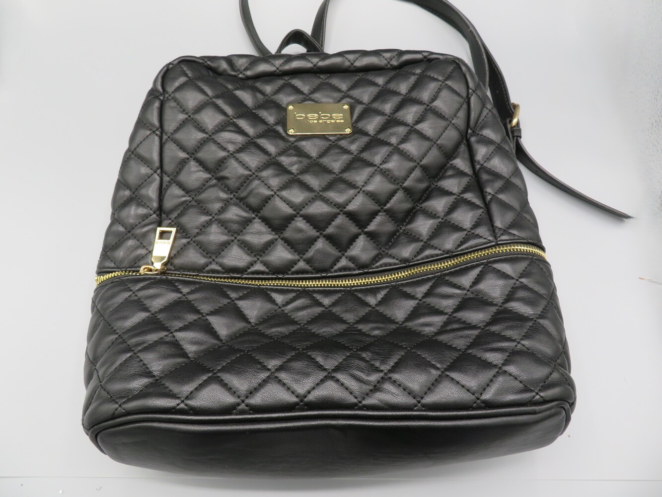 BEBE QUILTED BLACK & GOLD BACKPACK