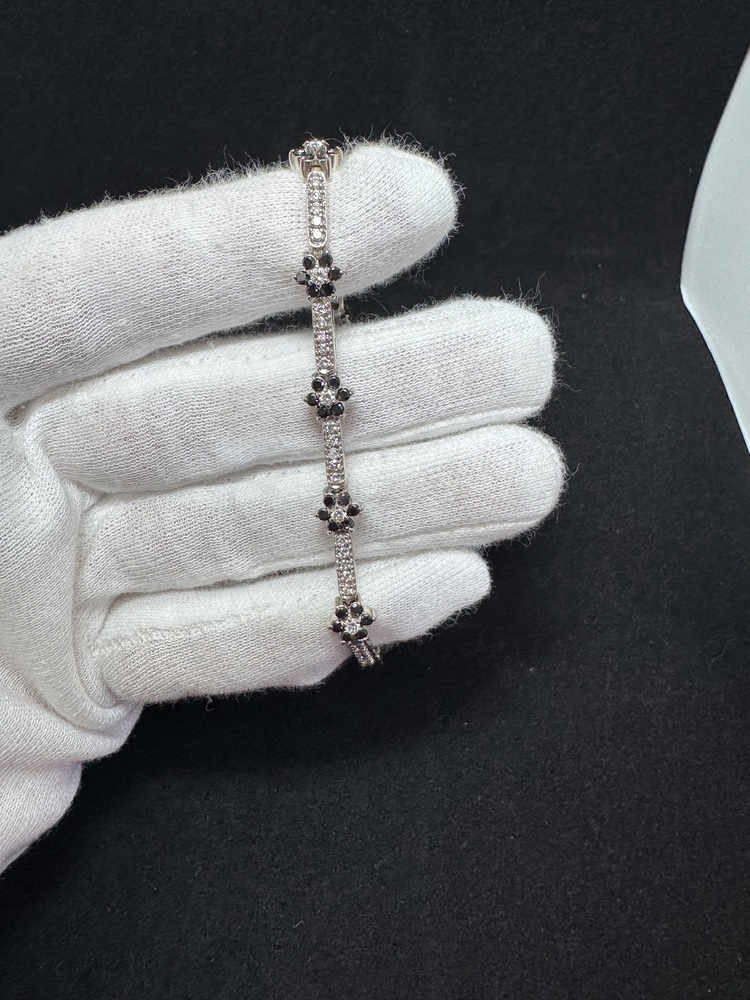 7.20dwt Sz:6 14K WG BRACLET WITH WHITE DIAMONDS AND BLACK DIAMONDS