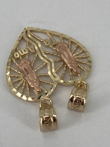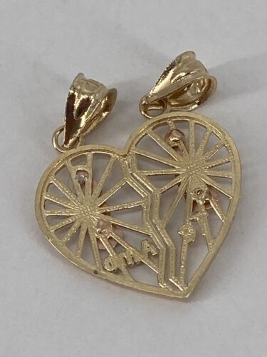 14KT Two-Tone Gold Mary Heart Pendant 1.9g