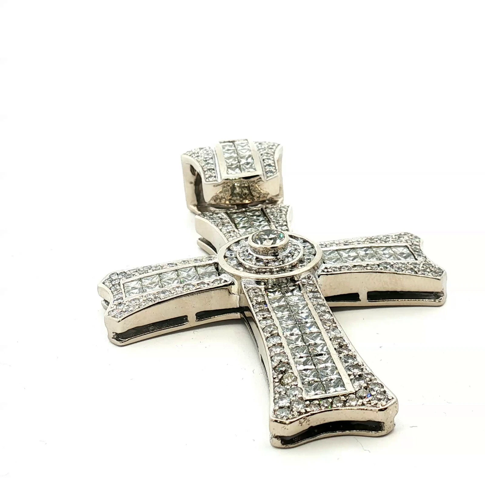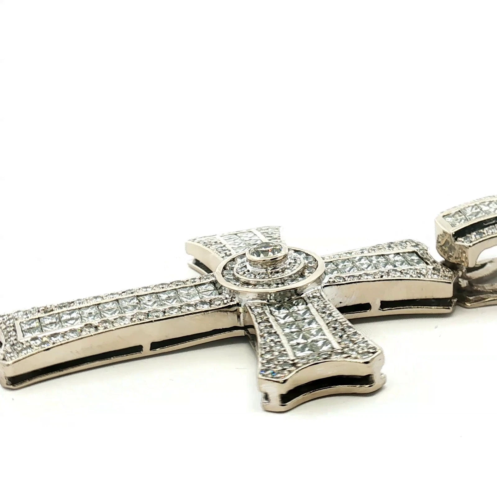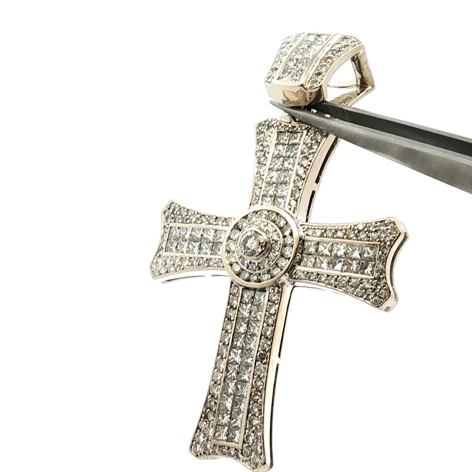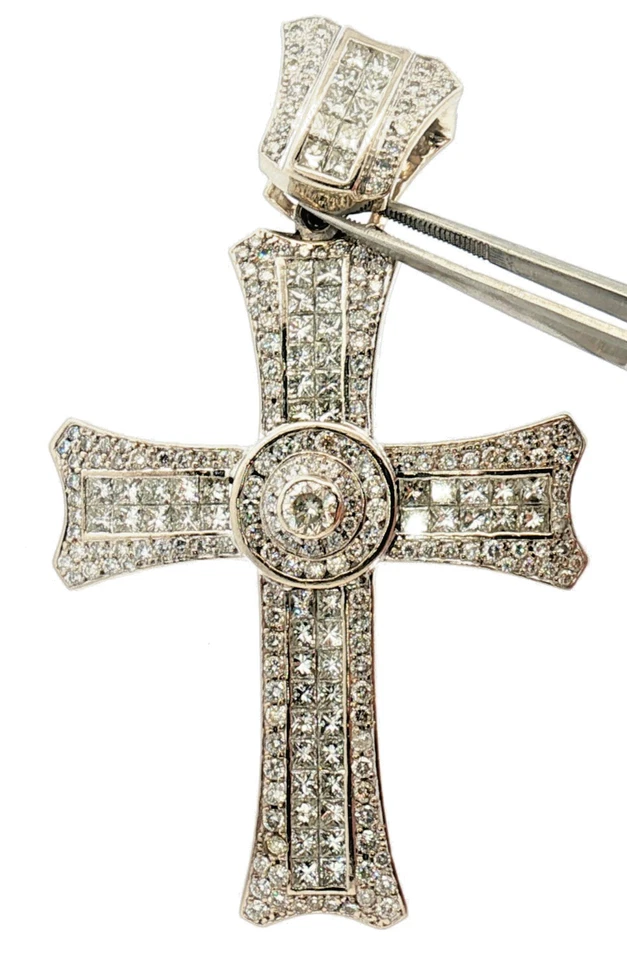 14KT White Gold Diamond Cross Pendant 65.3g 3in