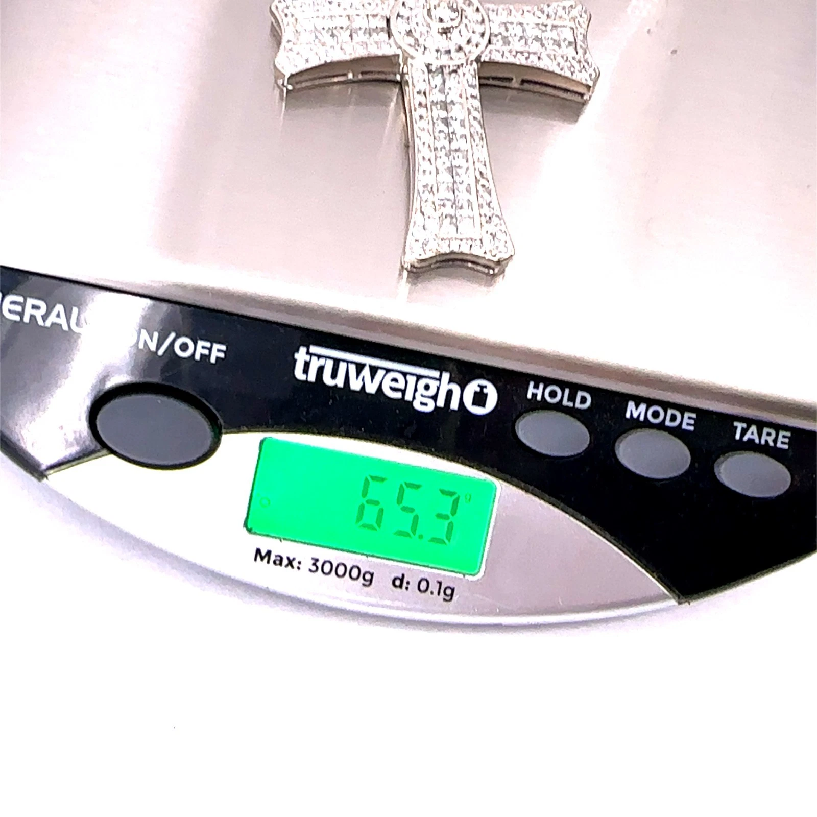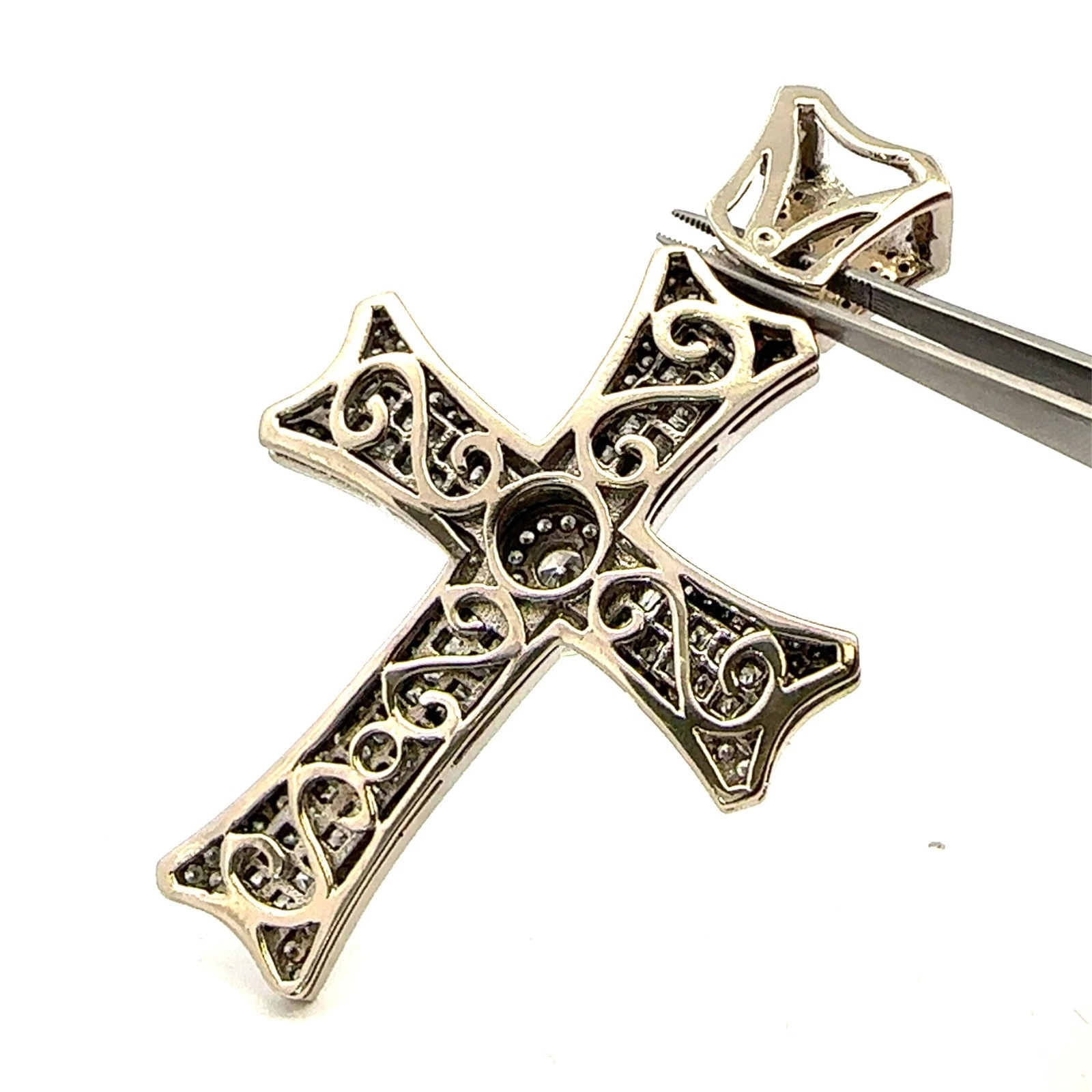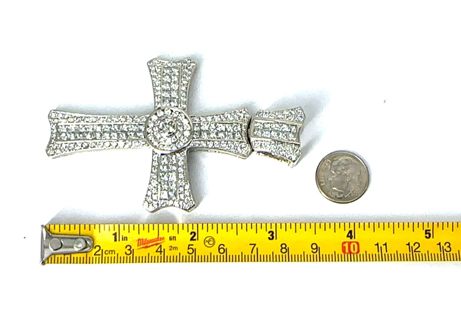 14KT White Gold Diamond Cross Pendant 65.3g 3in