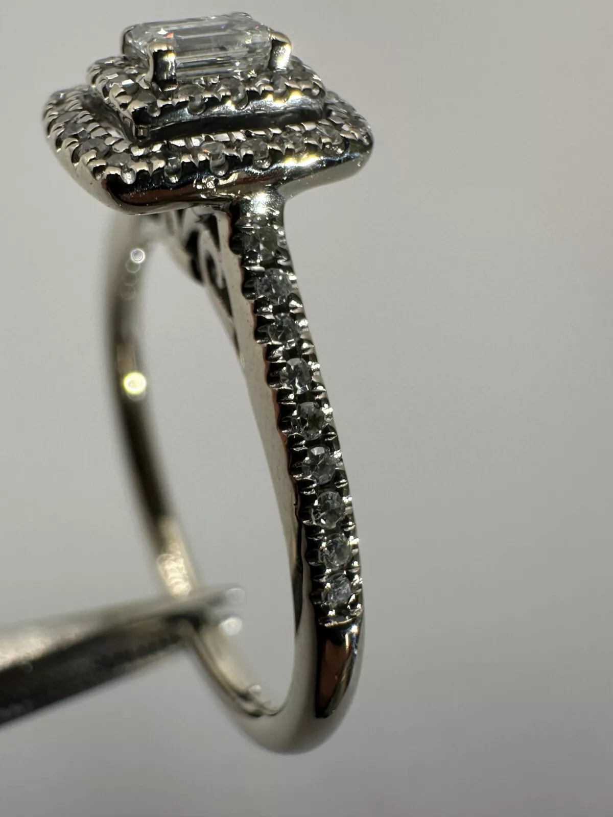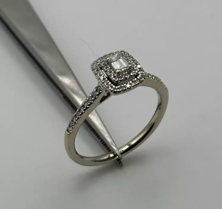 Set with an approximate total diamond weight of 3/8 carat, this ring sparkles with a captivating brilliance. The diamonds are carefully selected for their clarity and fire, creating a dazzling effect that catches the light from every angle. The arrangement of the stones is thoughtfully designed to maximize their visual impact while maintaining a balanced and sophisticated aesthetic.