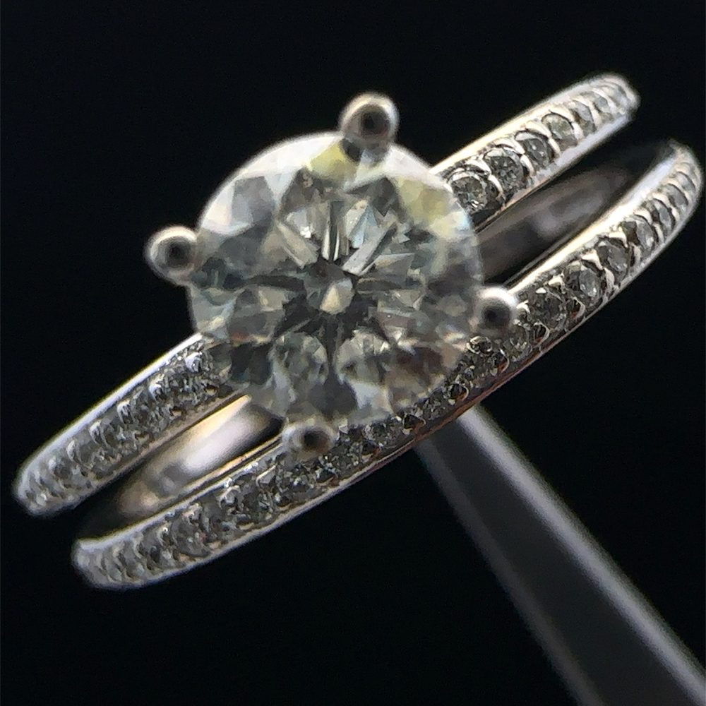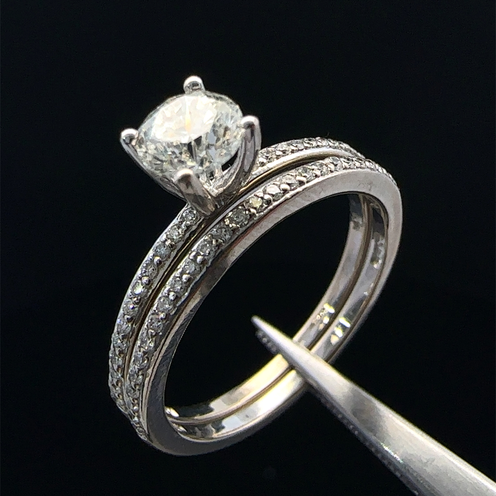 14KT White Gold Effy Ring Set with .52 CTTW Center Stone - Size 7