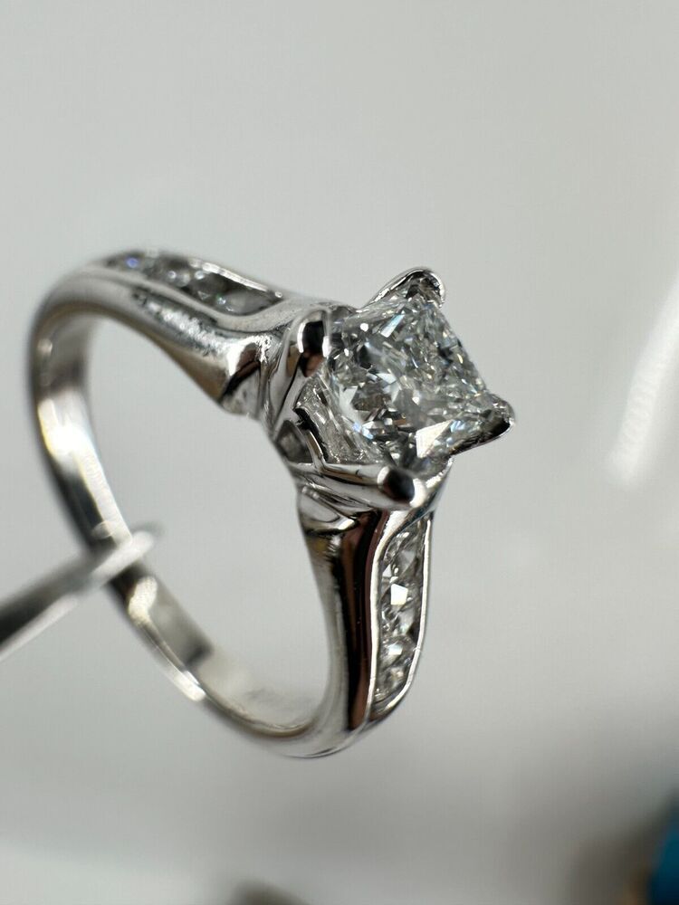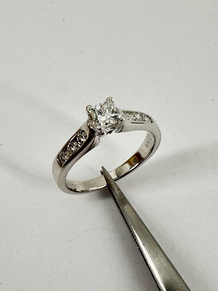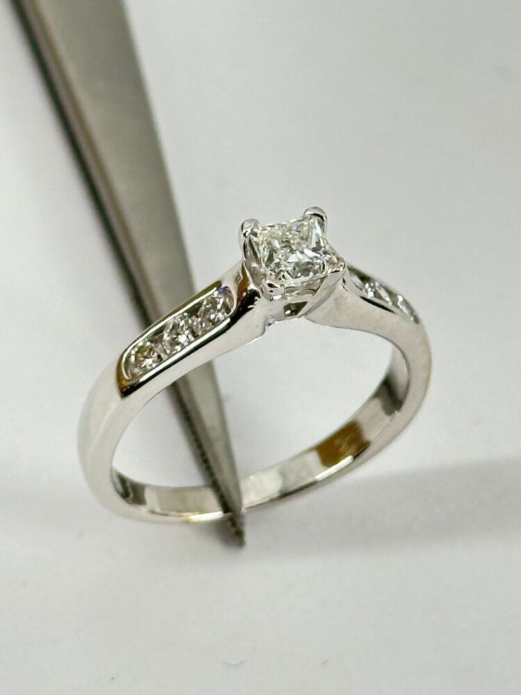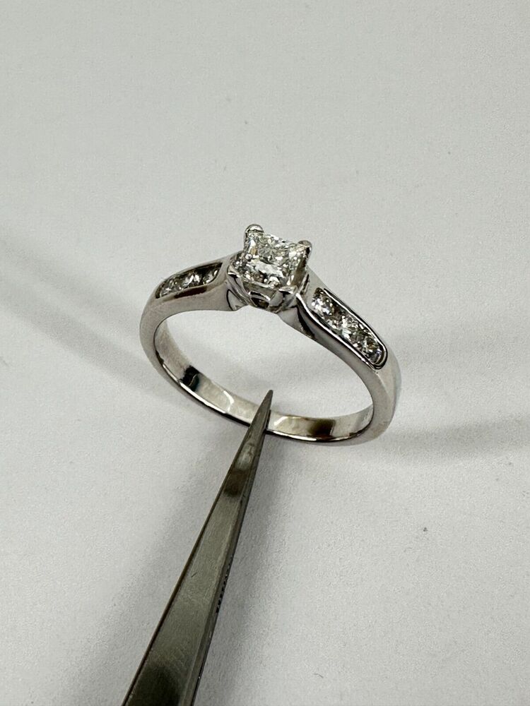 14KT White Gold Princess Cut Diamond Ring Size 7 3.4g